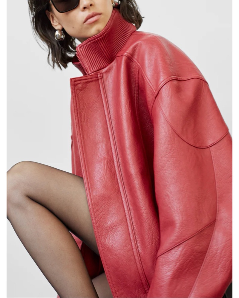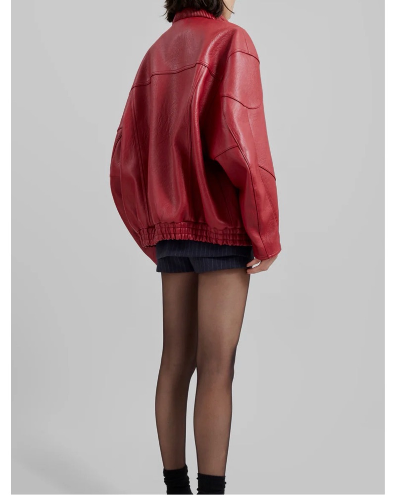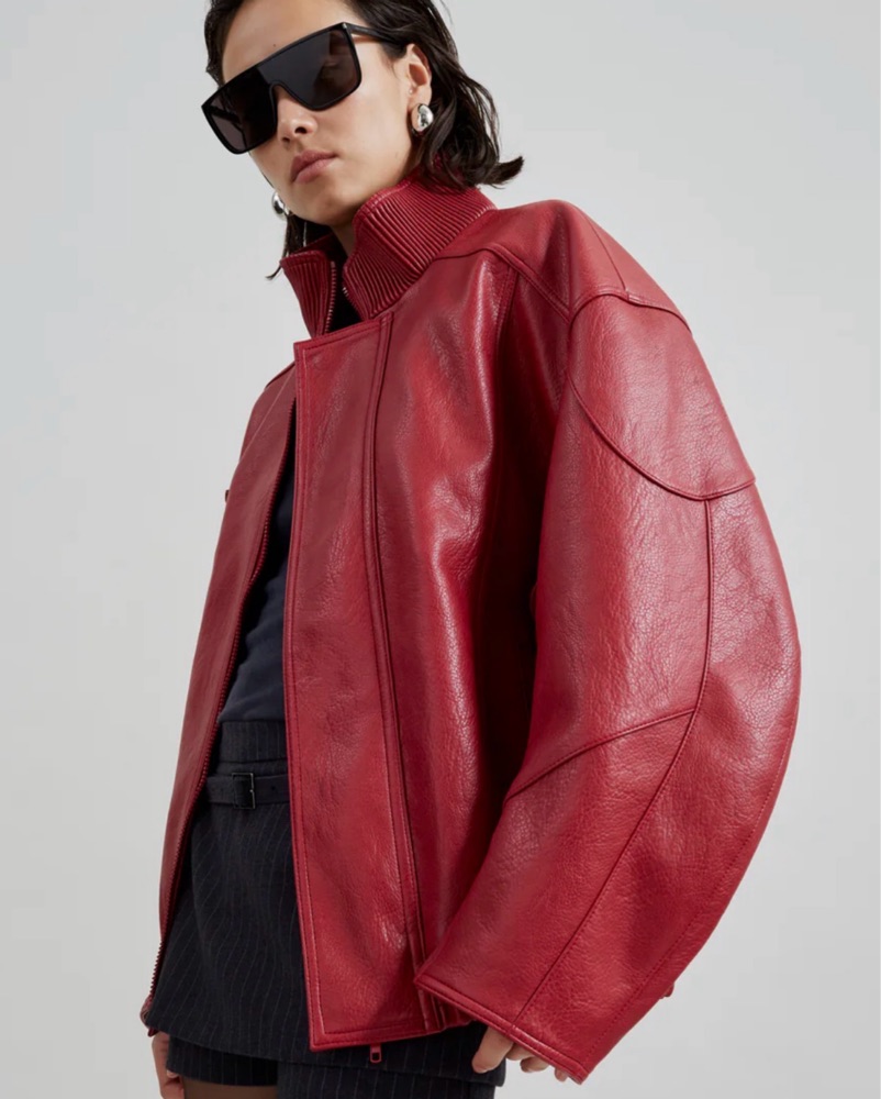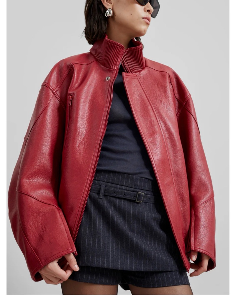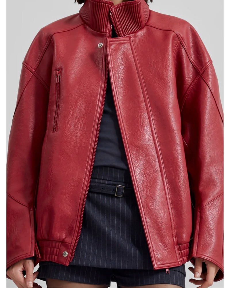 Relaxed fit, high collar Frankie Shop red leather jacket!! On constant rotation in my wardrobe, I am obsessed with her ‼️✨ fits like oversized s/m