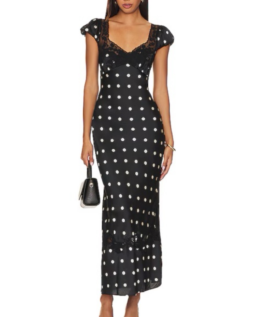 Black and white polka dot maxi dress