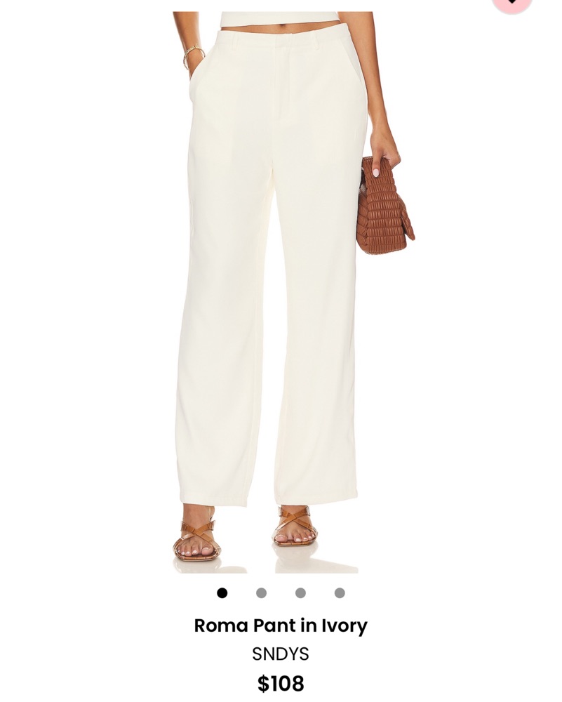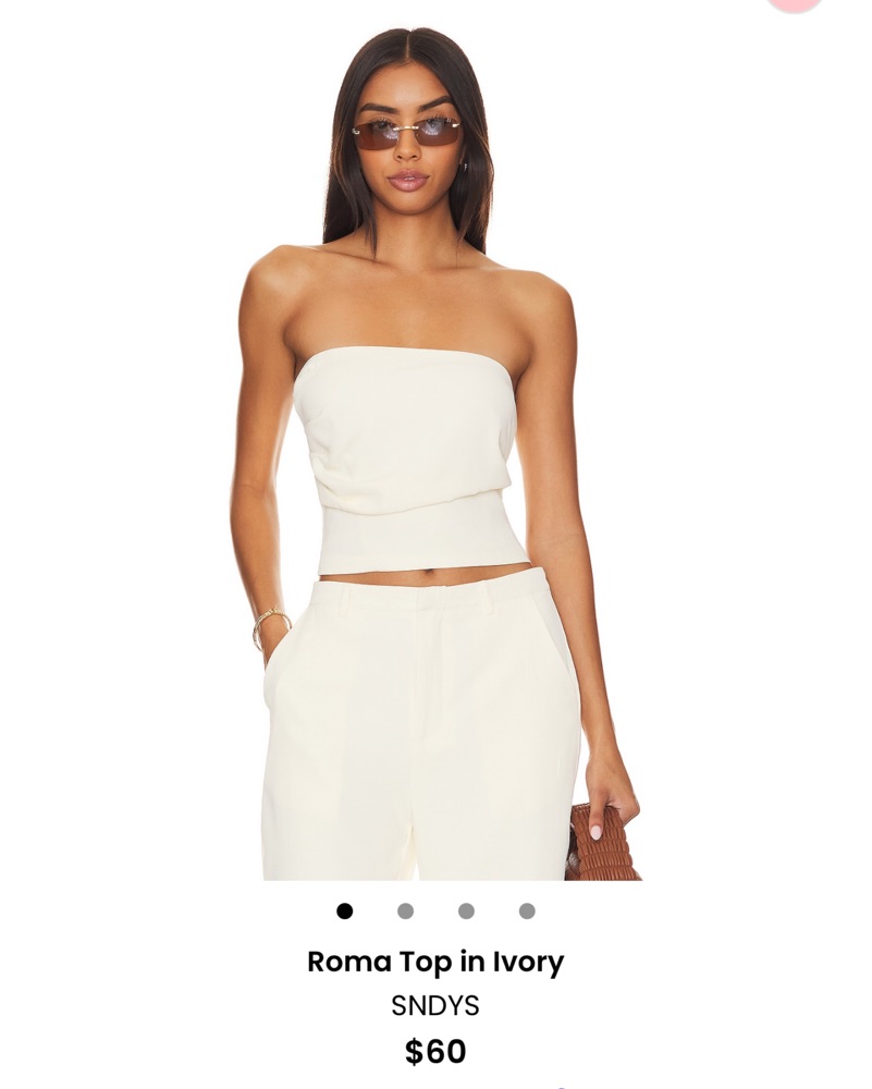 Revolve’s SNDYs Tube top pant set in ivory! Bottoms are XS top is S. I’m usually a S in pant but these ran big. Top has full zip closure and pant has zip closure in felt with hook & bar closure. Perfect summer set or vacay fit!