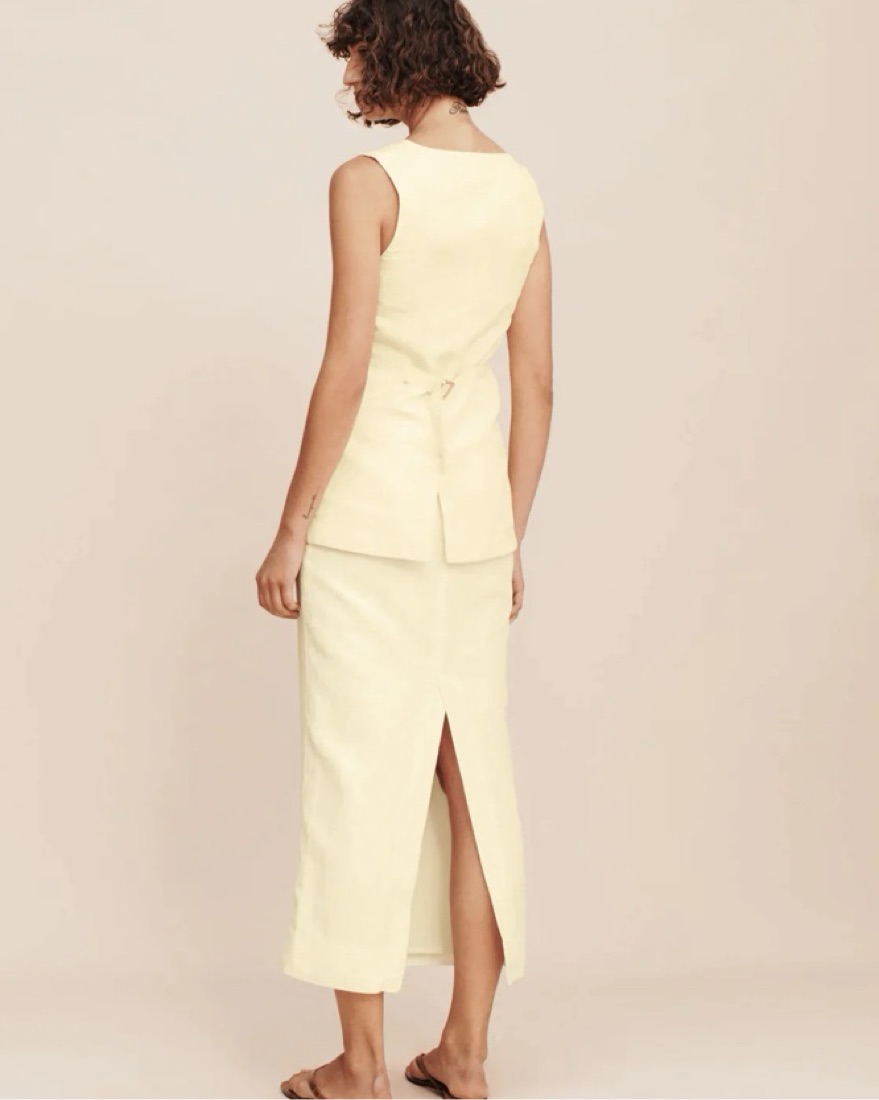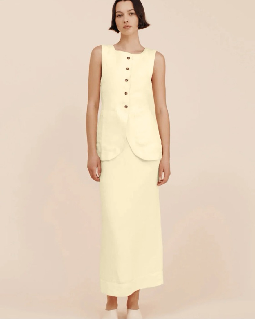 Butter Yellow Posse Emma Vest Skirt Set by Posse - Pickle