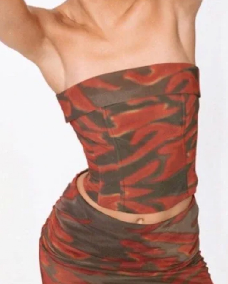 This With Jean Carla corset is perfect for a night out or casual day. The bold pattern and crop silhouette create a trendy, eye-catching look. Size small :)