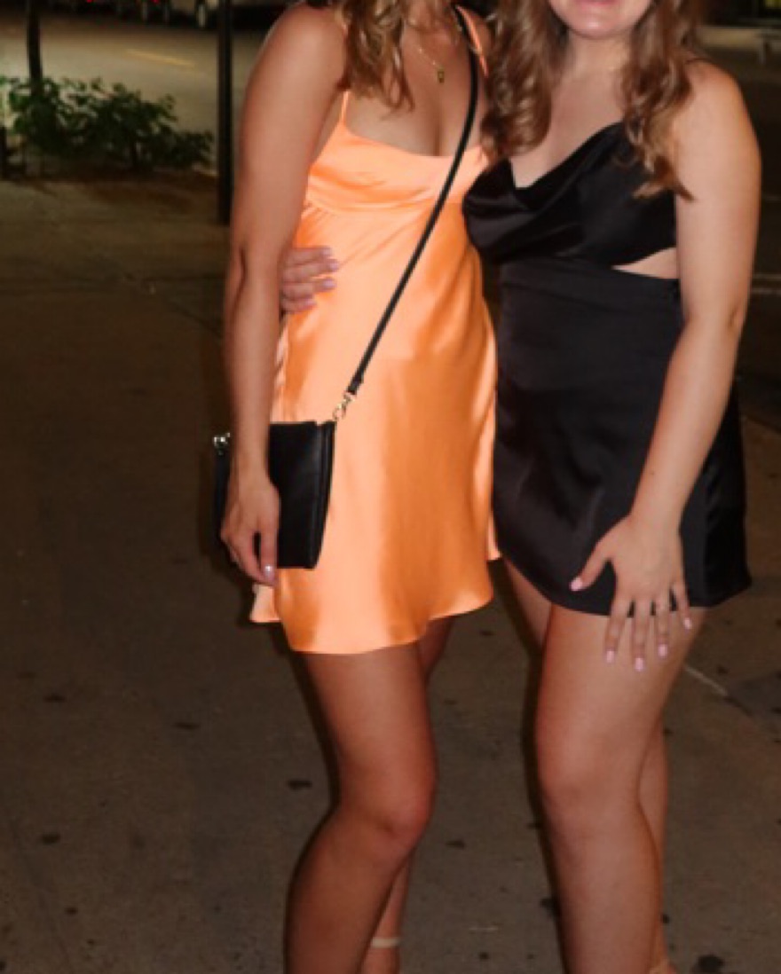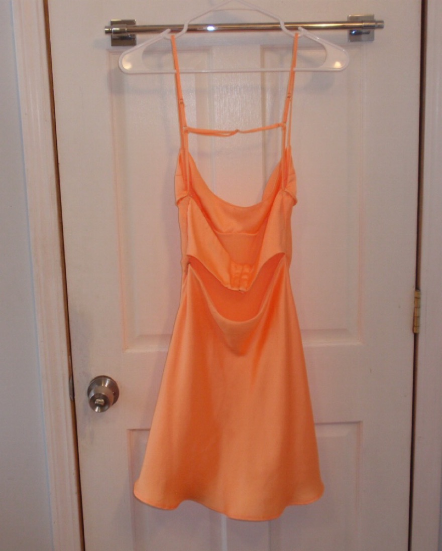 Super cute dress for a tropical vacation 🧡 Satin/silky fabric and cut out in the back.