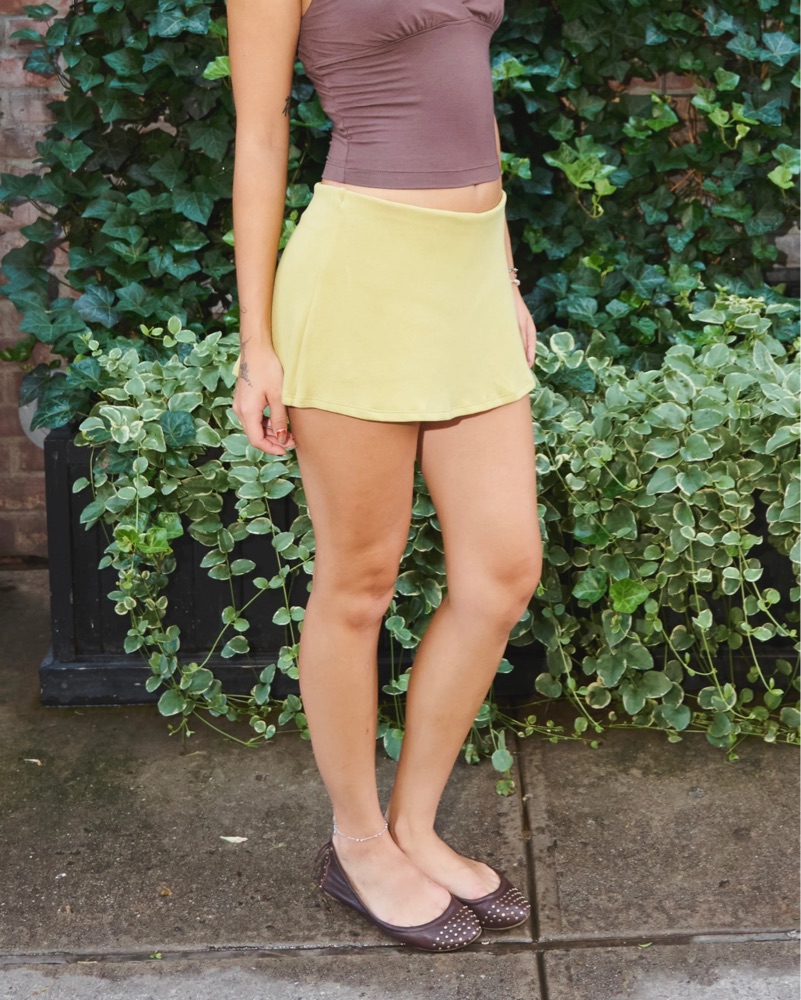 The perfect skort! micro mini skirt with build-in shorts and an elastic waist band. Feels super soft and comfy with good coverage without flashing anyone! Plus this is perfect for matching with your matcha!🍵
