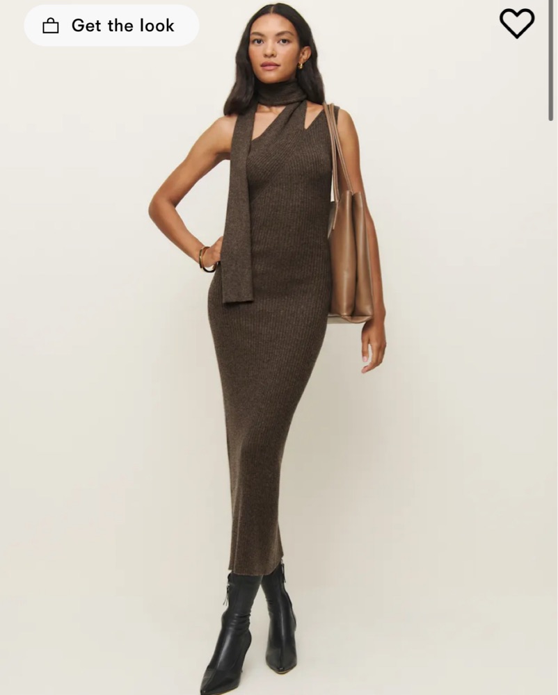 Cashmere sweater dress, in walnut, appropriate for work, great for fall winter and going out