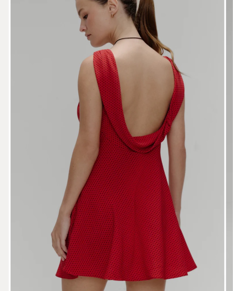 Emilia polka dot red mini dress from Frankie’s bikinis with a cowl and open back. Never worn.