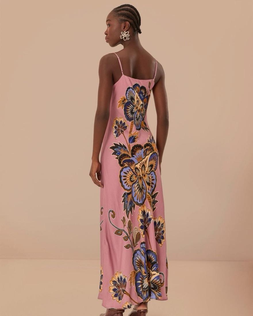 This piece features a captivating mix of oversized florals against a soft pink backdrop, complemented by a flattering square neckline and flowing silhouette (tags: Reformation, Arcina Ori, Realisation Par, wedding guest dress, summer dress, vacation dress)