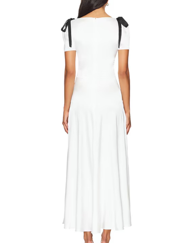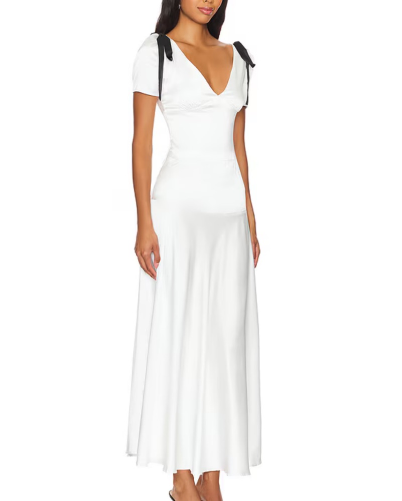Charmeuse fabric with shoulder bow accents