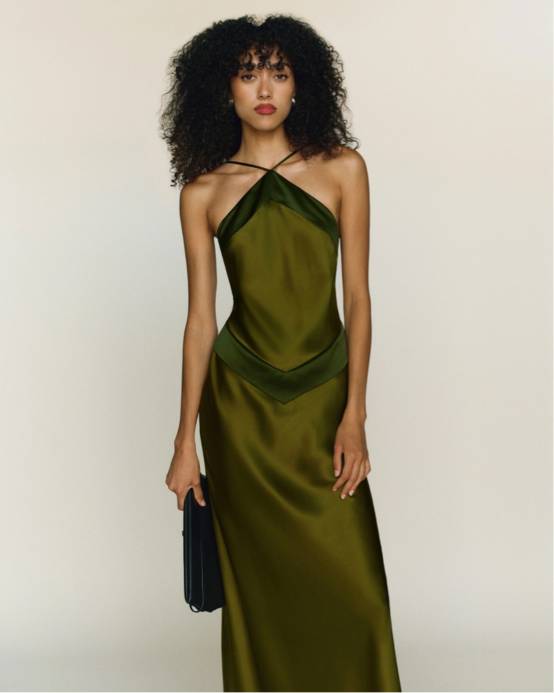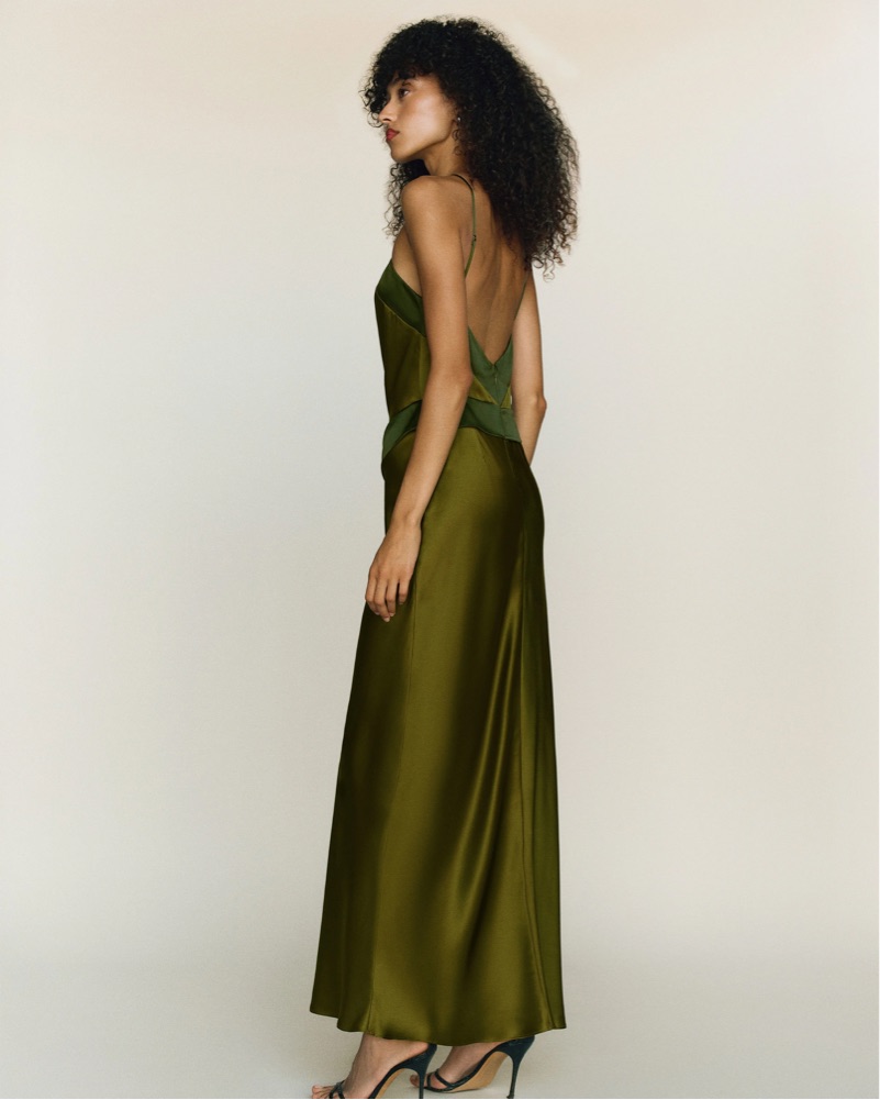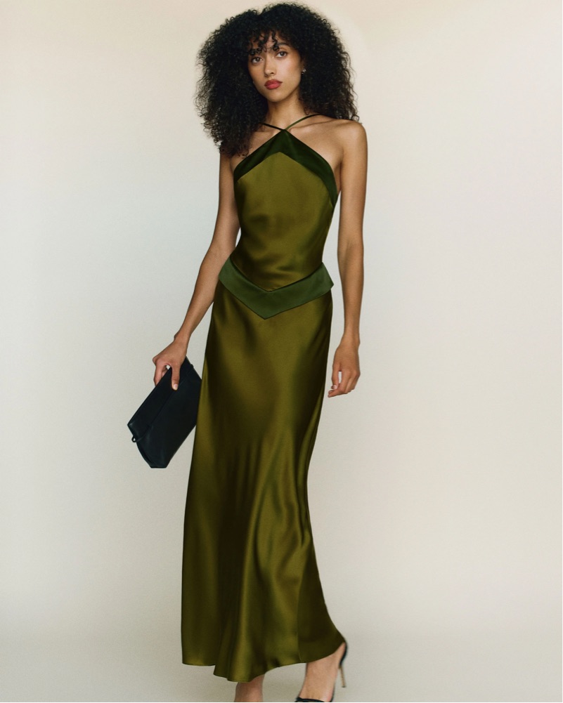 Jillian Silk Dress from Reformation, a sleeveless maxi dress with an adjustable halter-style neckline and open back. Size 2 and in perfect condition. Please no pins or stitching if you rent!