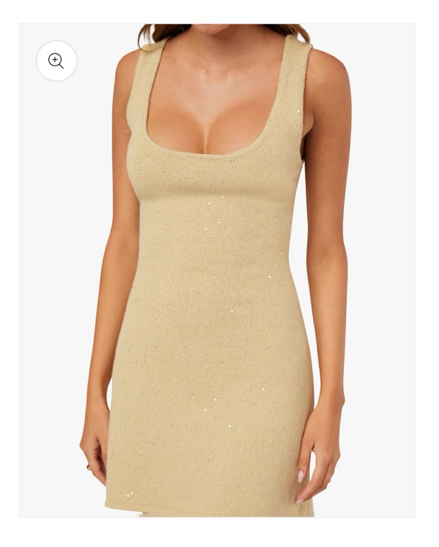 This mini dress is made from a lightweight knit that sparkles with sequins.