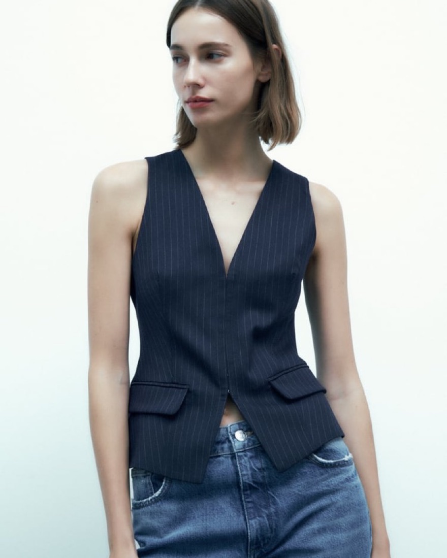 Navy Zara Pinstripe Vest by Zara - Pickle