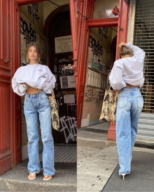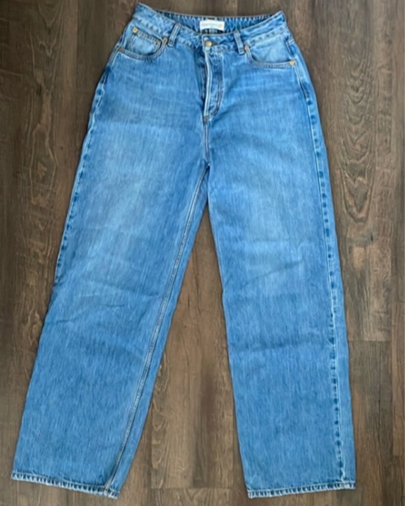 heavy manners baggy high rise denim jeans, babygirl wash. most flattering jeans i own for real. size 24