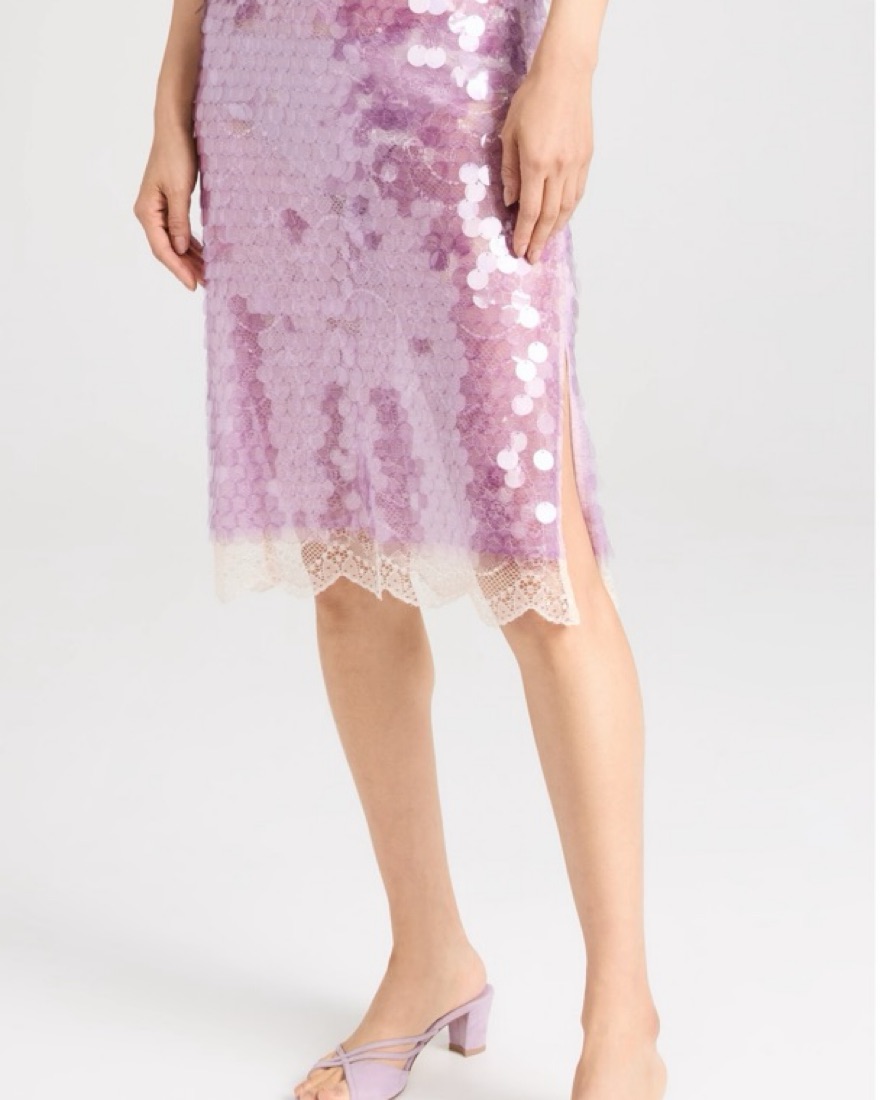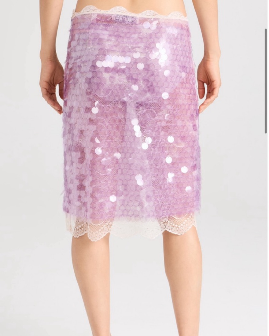 Siedres Helena Lace Trim Sequin Skirt by Siedres - Pickle