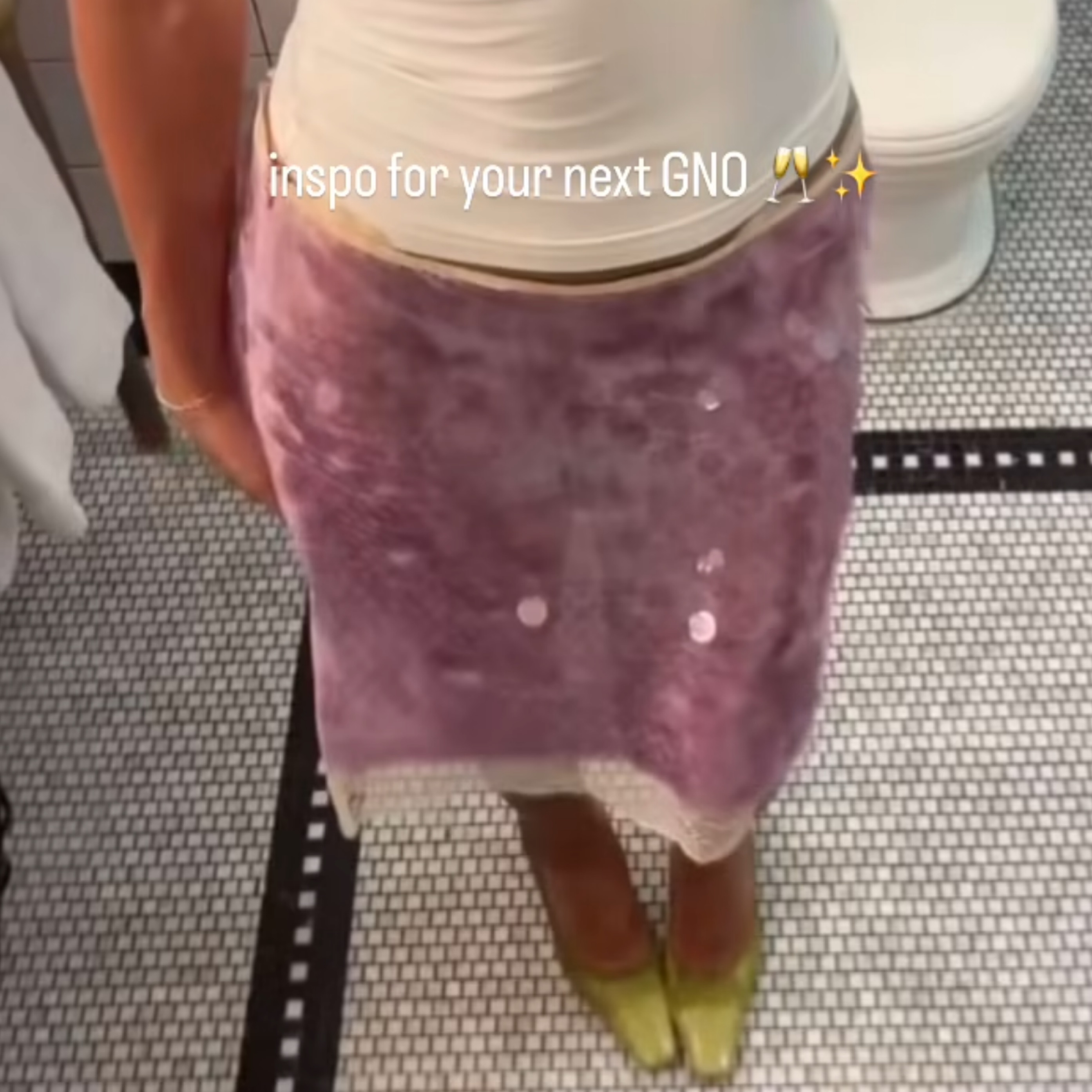 *NOT FOR SALE* but can be rented! Midi low rise purple sequin skirt! Super cute for a night out or birthday ‘fit!