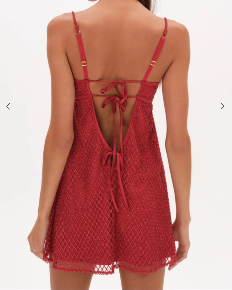 Red glitter mini slip dress