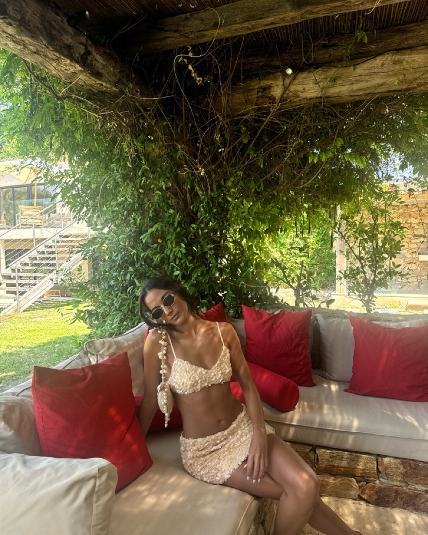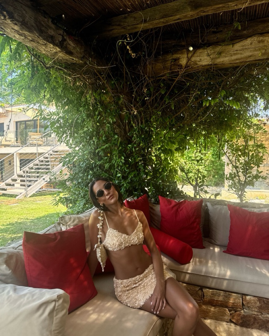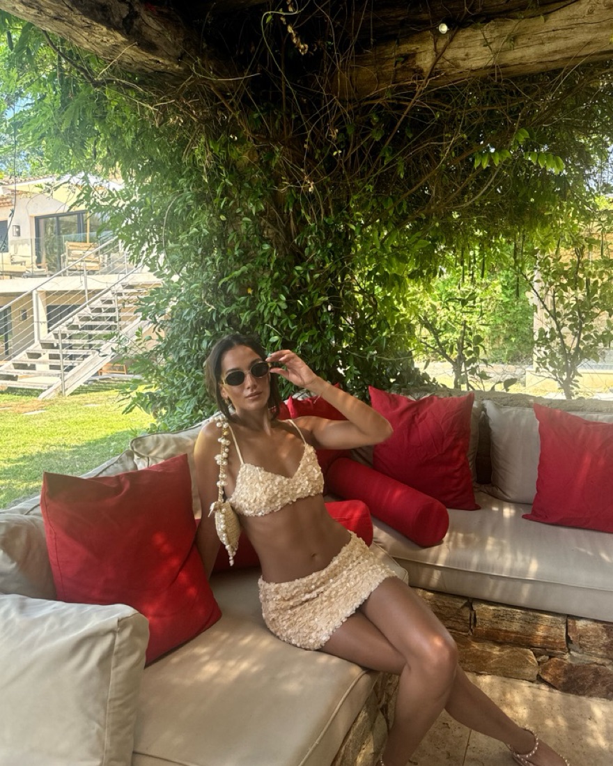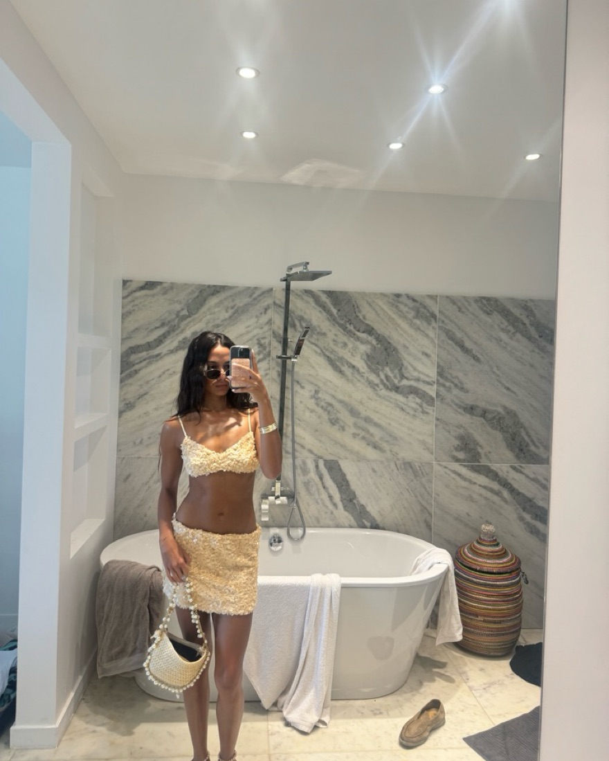 GUIZIO sequin ari gathered top and skirt set