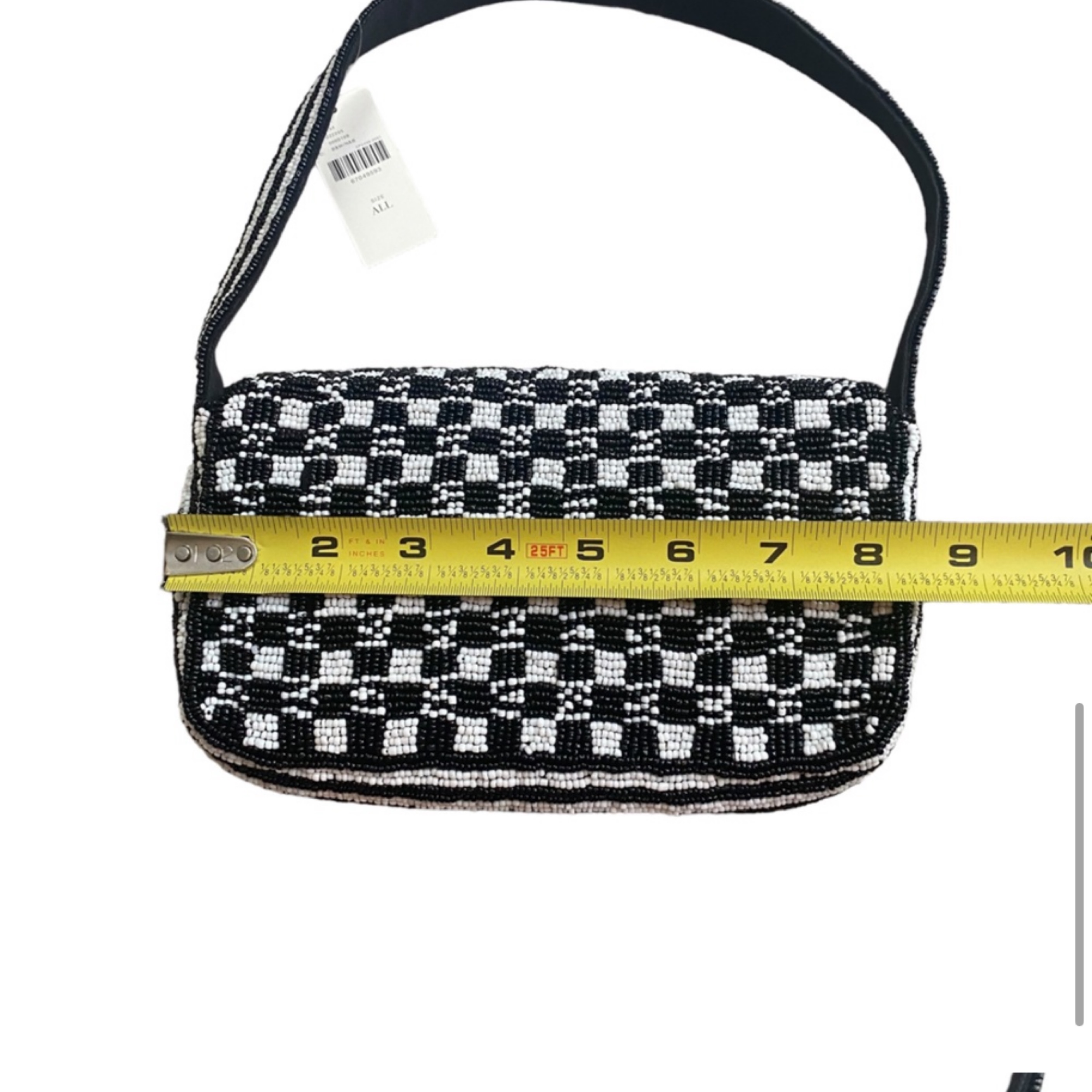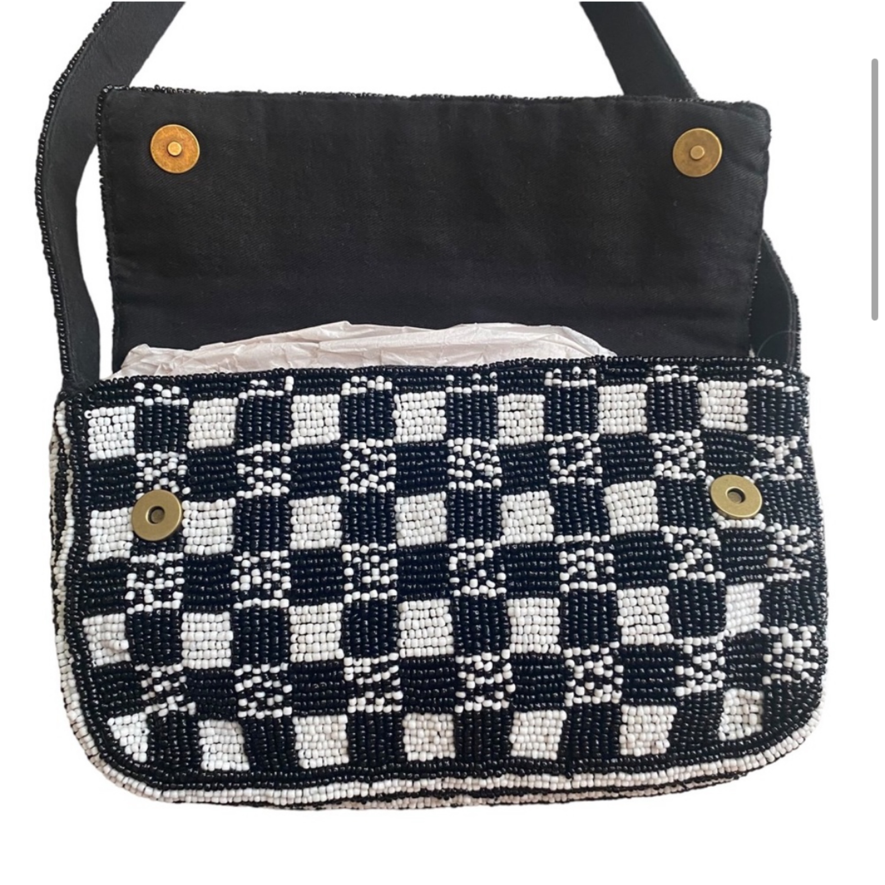 Black and white beaded checker shoulder bag. Approximately 8.5”x5” — perfect condition!