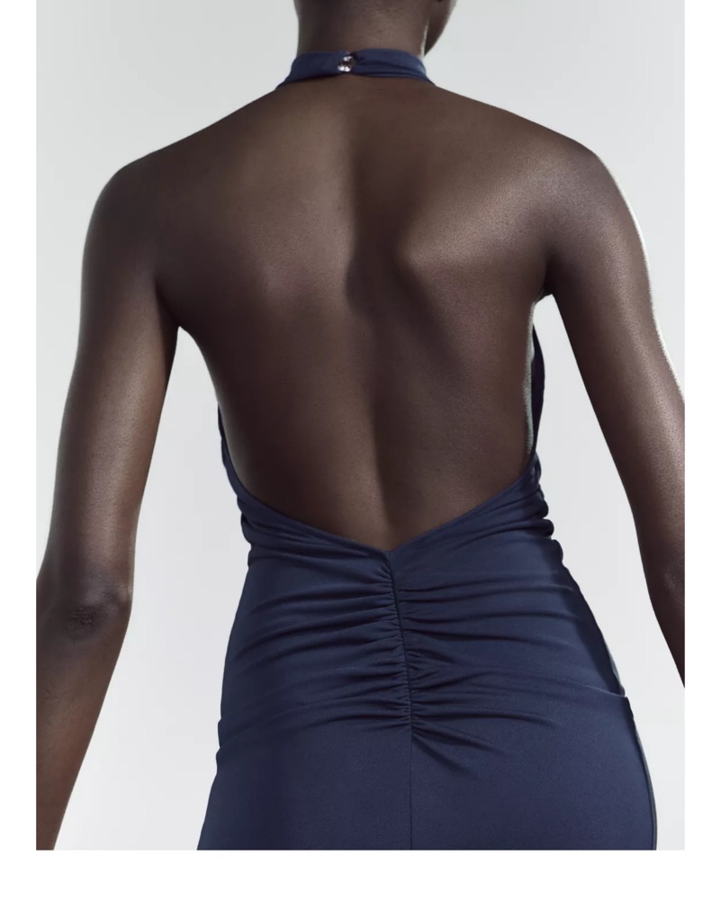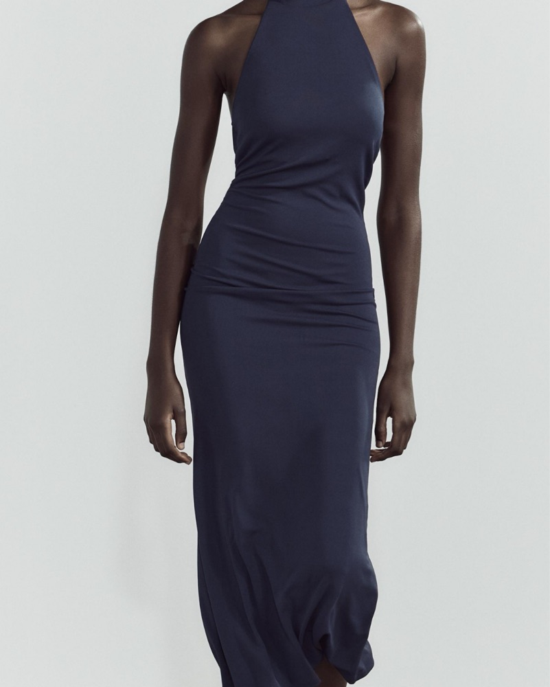 This stunning black maxi dress with a halter neckline is perfect for a formal event or a night out. The figure-flattering silhouette and sleek design make it a versatile choice.