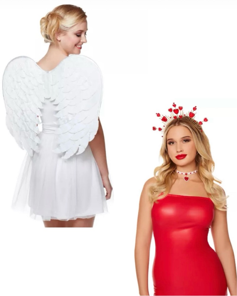 Cutest Cupid accessories for an easy Halloween costume! Comes with wings and the heart headpiece. Both from Spirit Halloween, worked so well and looked so great! Wings weren’t too big that they were annoying, and headpiece was comfortable to wear.