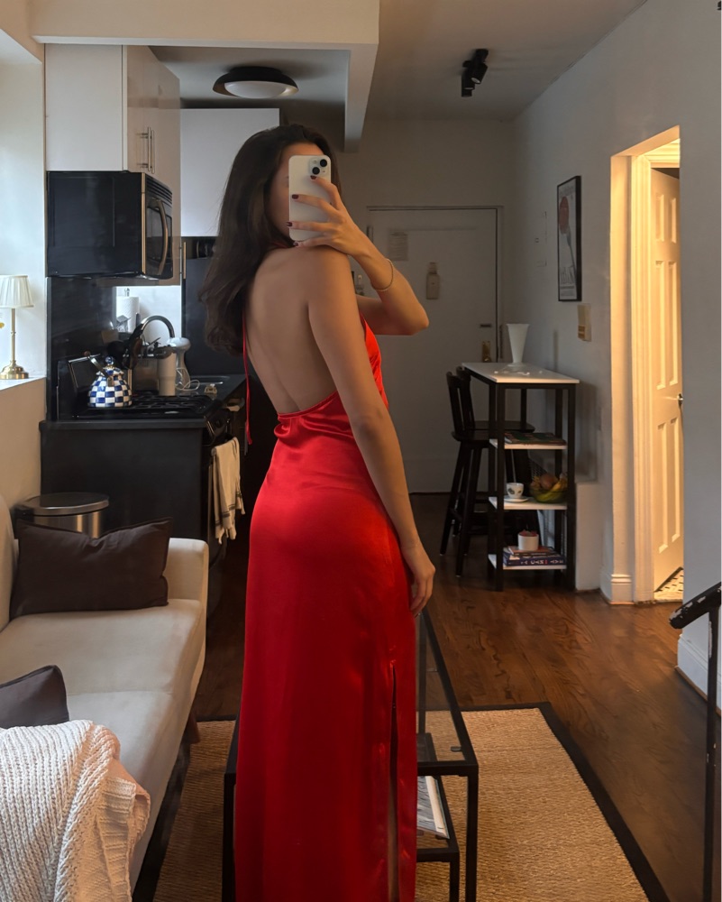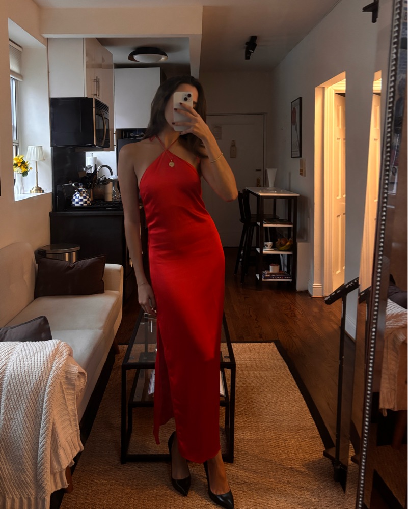 Gorgeous red halter neck dress with a scoop beg and leg slit! Ties at the neck, so its adjustable. NWT never worn!