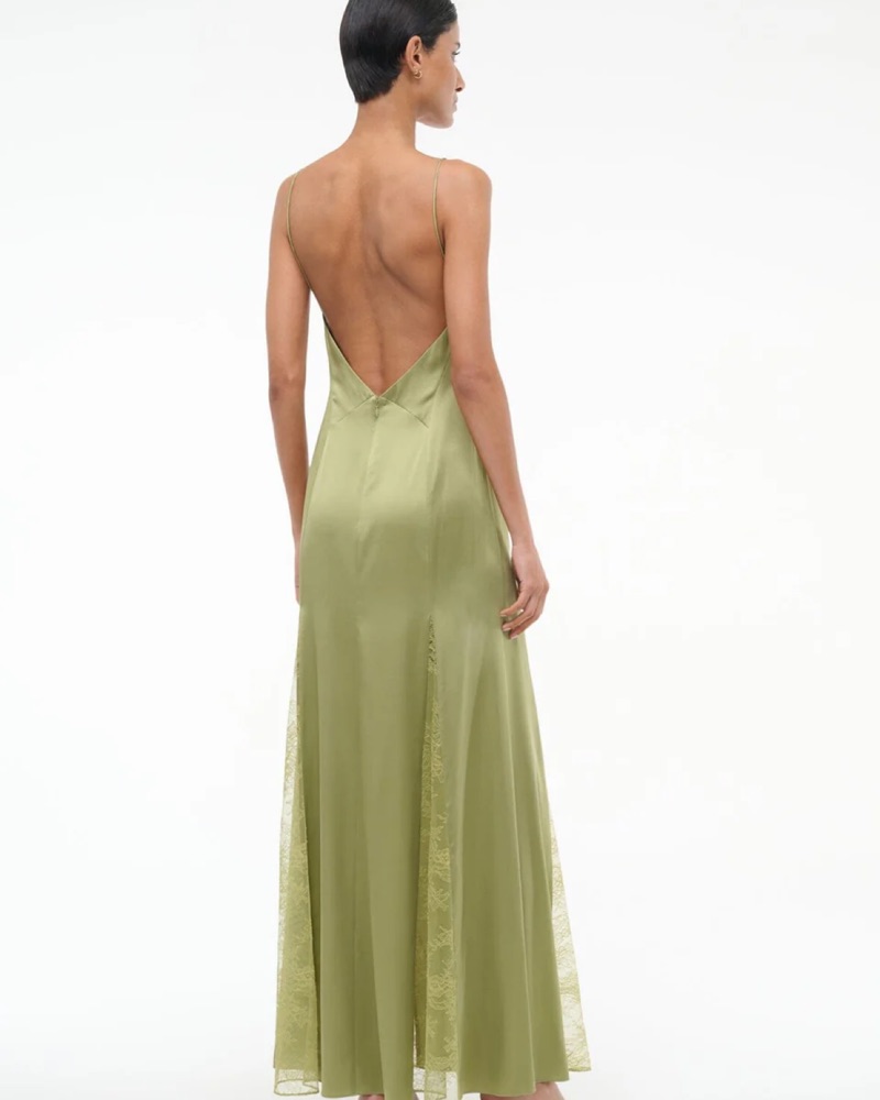 This stunning maxi dress is perfect for a formal occasion. The soft satin fabric and delicate lace accents create a luxurious, feminine look. Dress was tailored slightly to tighten it around the chest/ waist area.