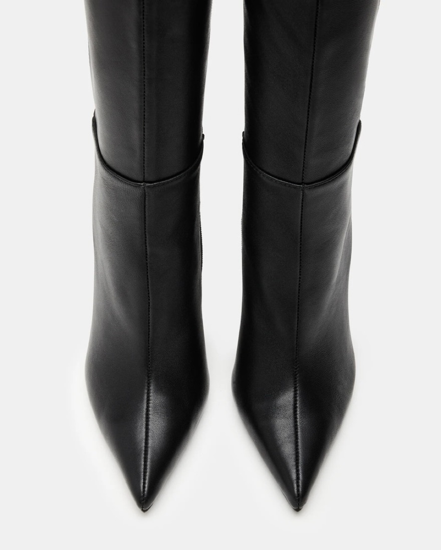 Steve madden Kathleen knee high boot, leather, ends in a stiletto and a point toe.