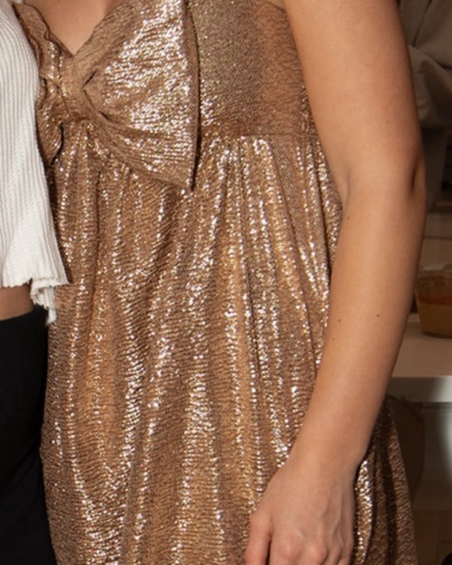 Shimmering Gold Sequin Bow Dress