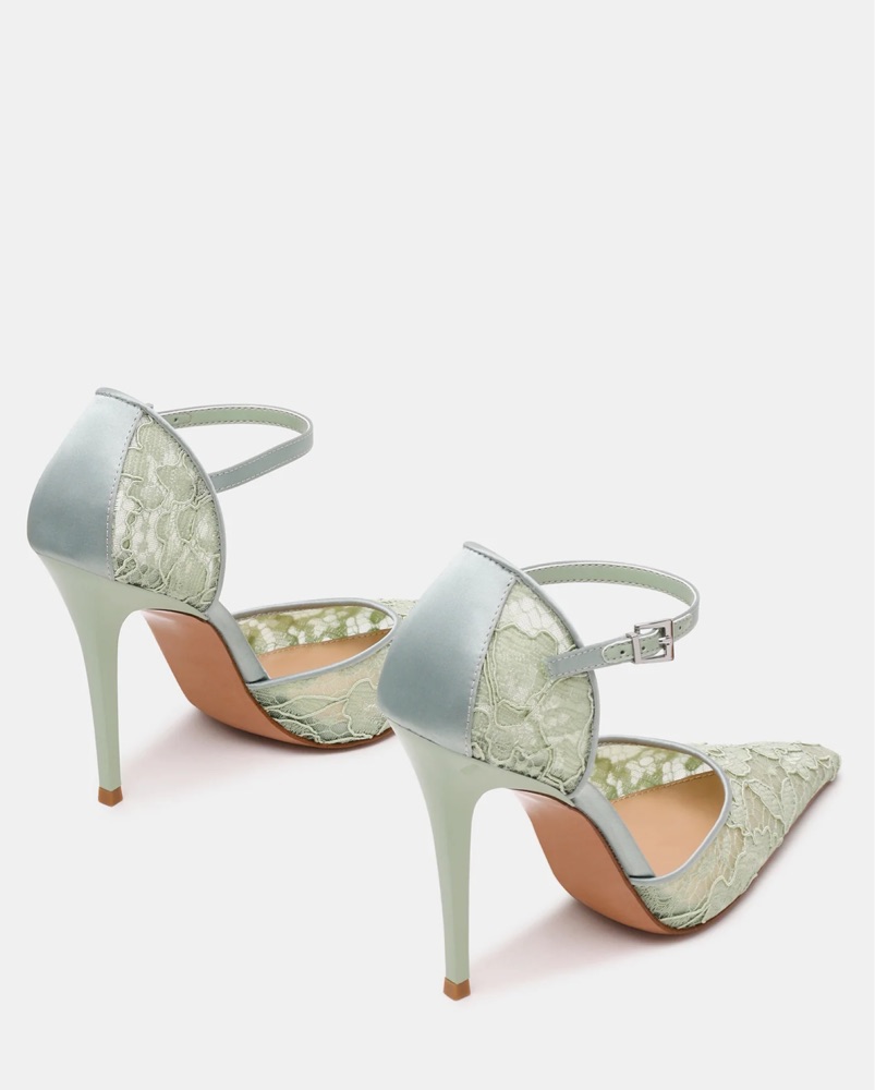 These pistachio colored heels from Steve Madden are sooo classy. Featuring a lace design, ankle strap, and beautiful height - they will spice up any look. Imagine these peeking out under jeans - to die for!