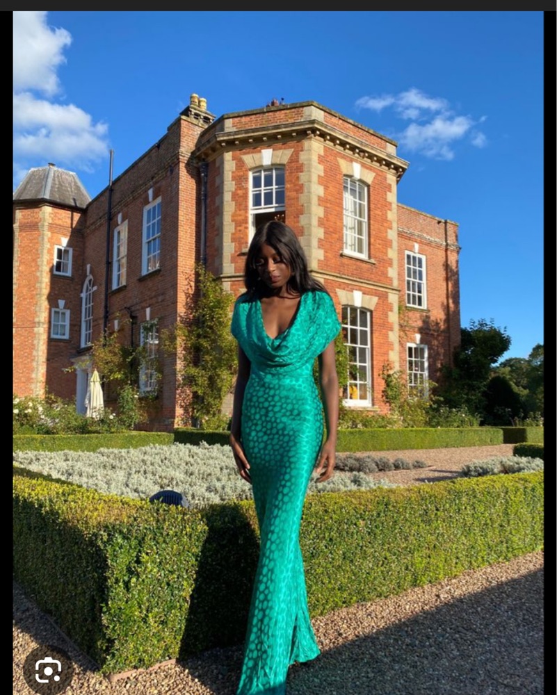 Stunning odessa dress from rat and boa in a beautiful emerald green color. The most stunning wedding guest dress!