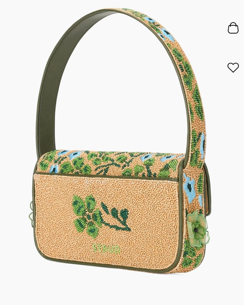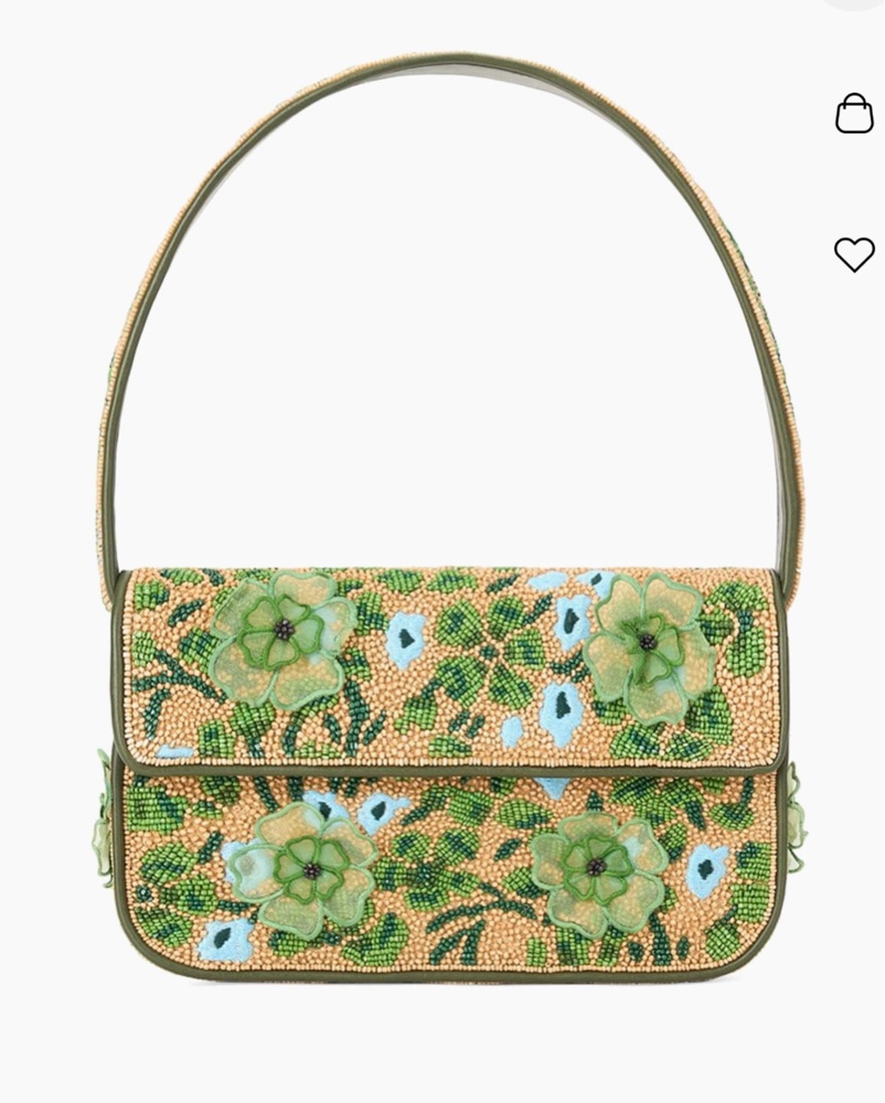 Stunning beaded Tommy bag from Staud with green and turquoise blue flowers. Please be delicate with her!