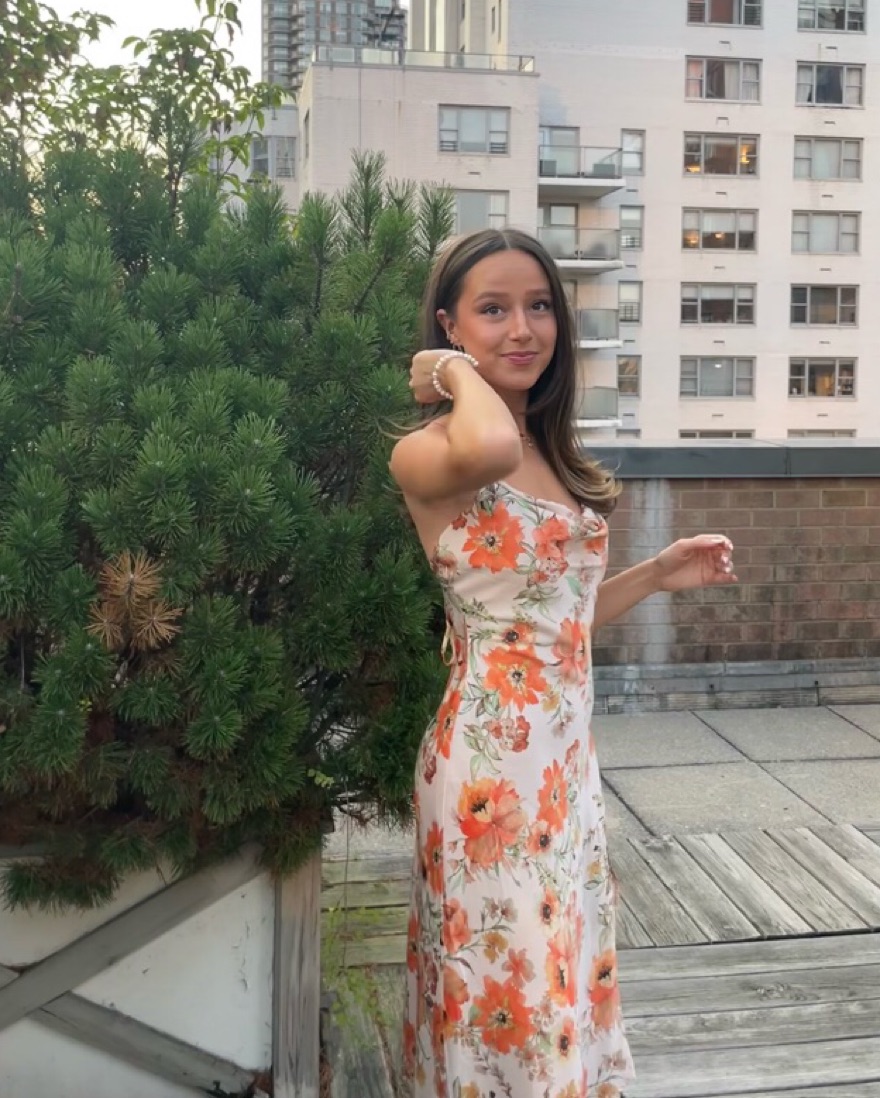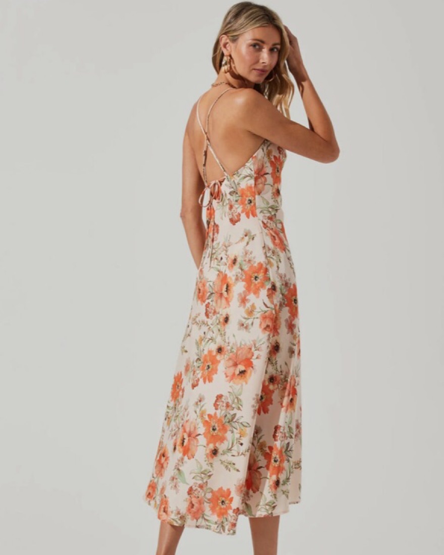 ASTR The Label Gaia Midi Dress in cream + orange. Gorgeous most flattering dress WORN ONCE, perfect for anything spring/summer - from dates in the park to wedding szn and beyond.