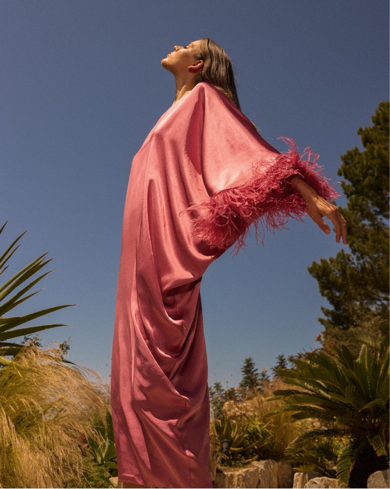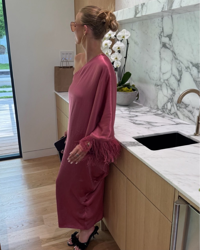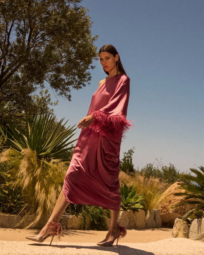 Zara Feather One Shoulder Satin Dress by Zara - Pickle