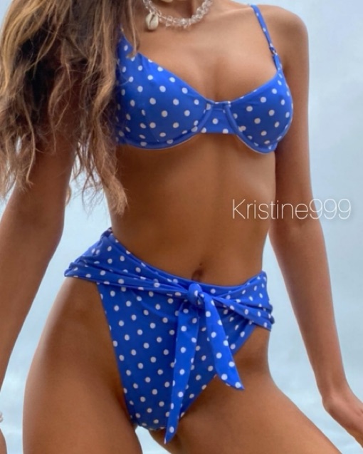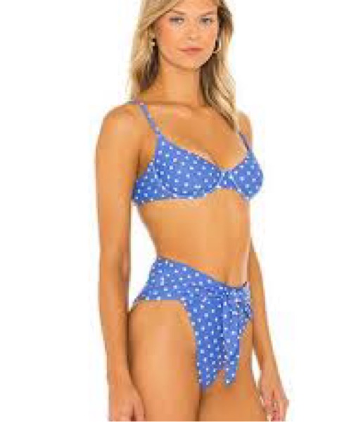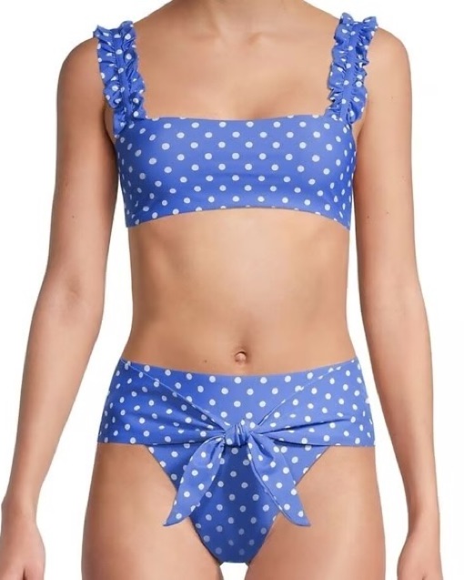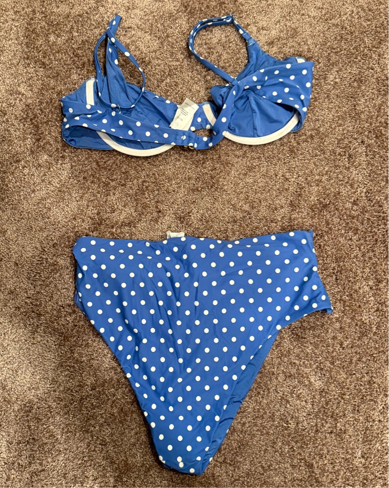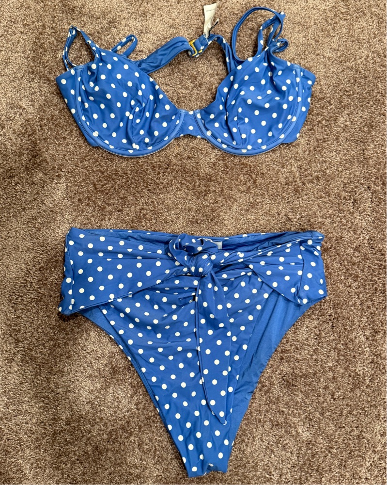 Chic blue polka dot bikini with a stylish tie-front design. Perfect for beach days. Excellent like new condition