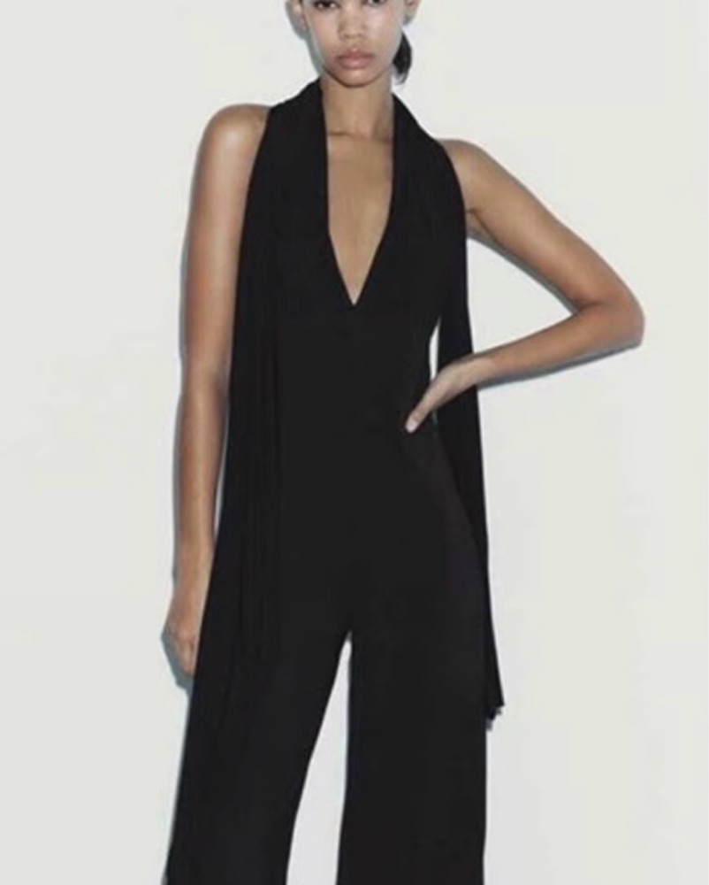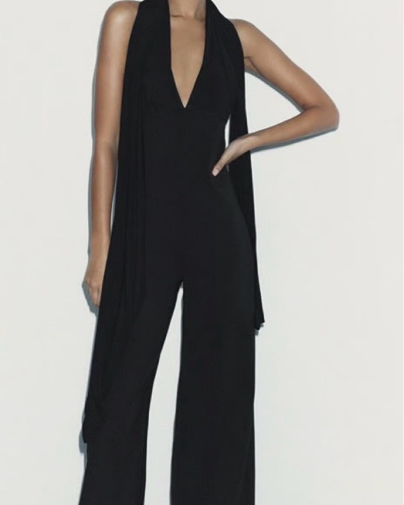 Zara Jumpsuit With Neck Tie/scarf