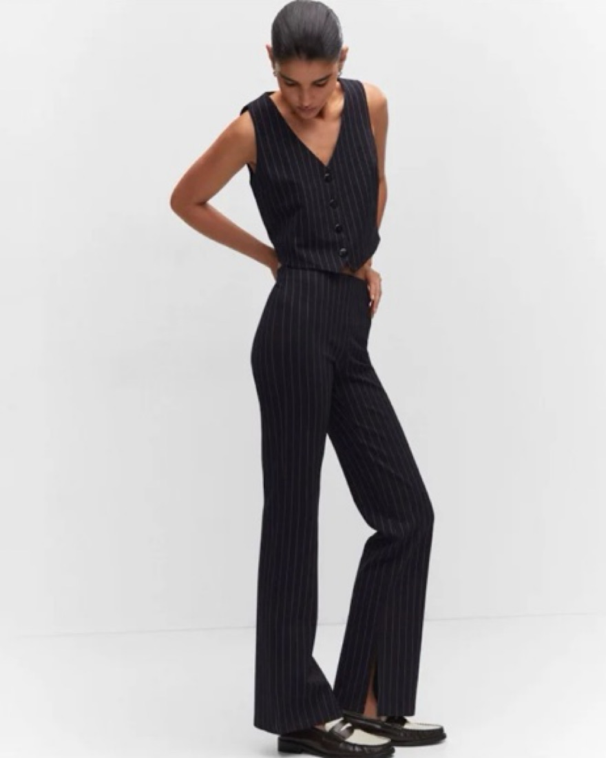 Navy Pinstripe Vest & Pant Set by Mango - Pickle