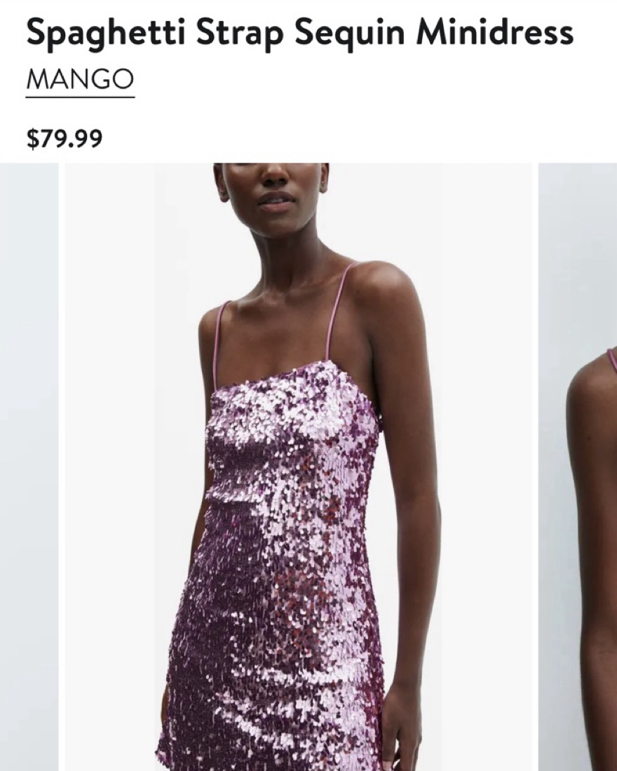 Purple sequing dress from mango. The straps were awful so I cut them off lol. This dress has been worn 1 time and is the perfect club/ night out dress!
