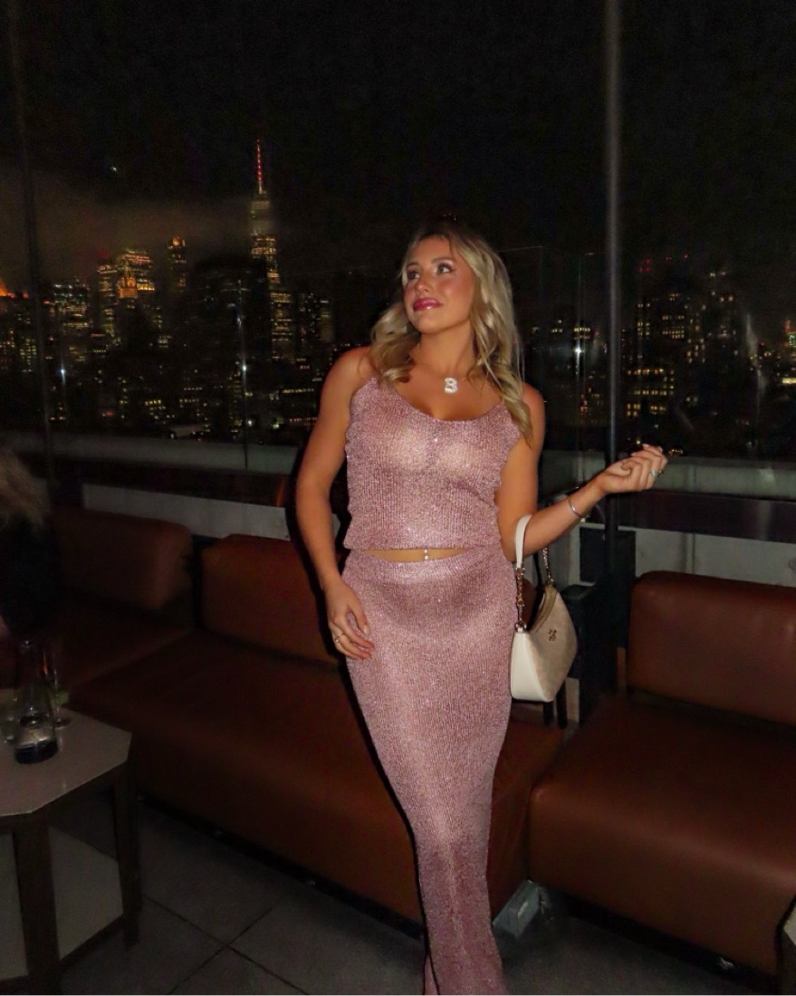 Perfect for date night, dinner party, spring break, etc! TOP: Medium BOTTOM: Small. It’s sheer but if you wear nude undergarments it’s completely fine :)