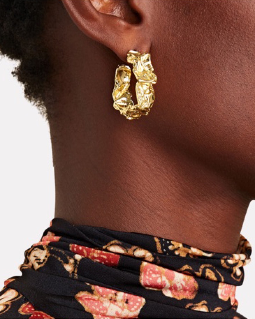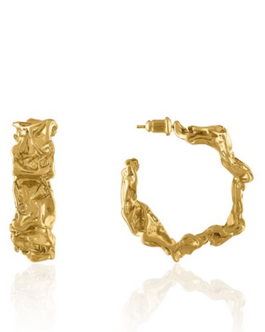 Incredibly gorgeous gold hoop earrings. Composition: 18k gold-plated brass, Post backs for pierced ears Measures: 1”