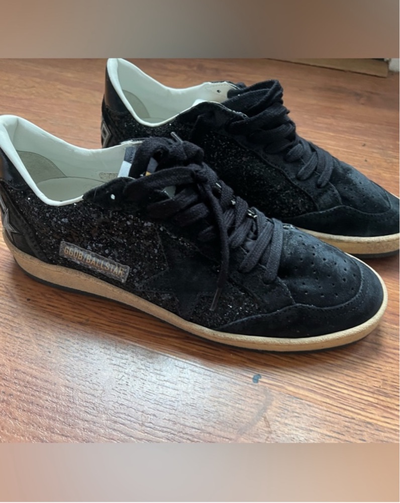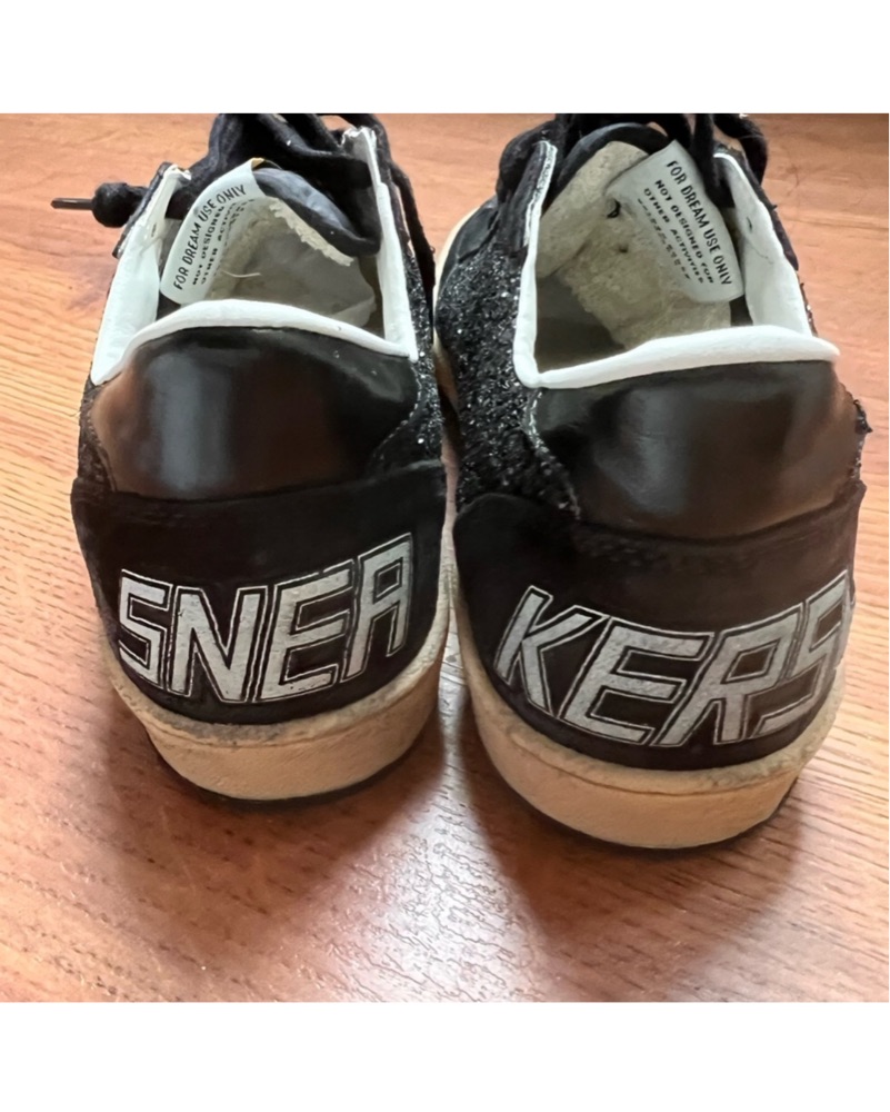 These stylish sneakers feature a sleek black suede upper with a shimmering sequin finish, providing a touch of glamour to any casual outfit. Pair them with your favorite jeans or dresses for a chic, streetwear-inspired look.