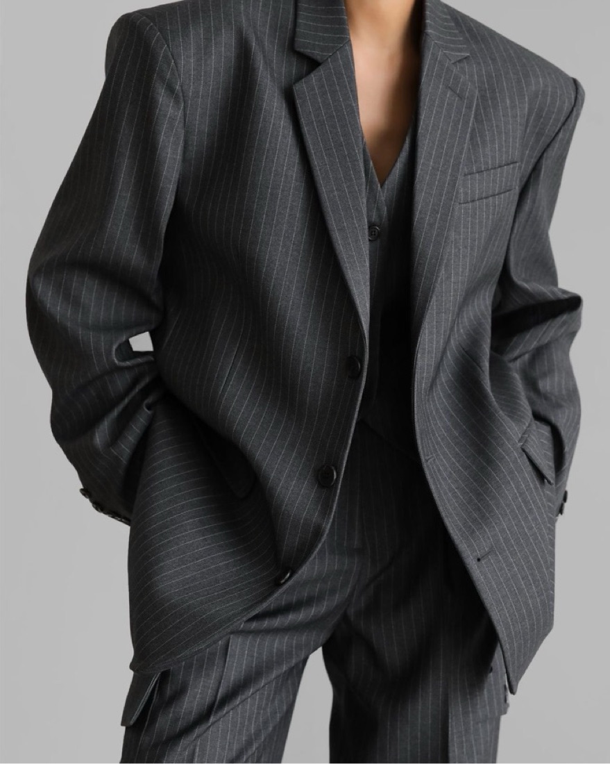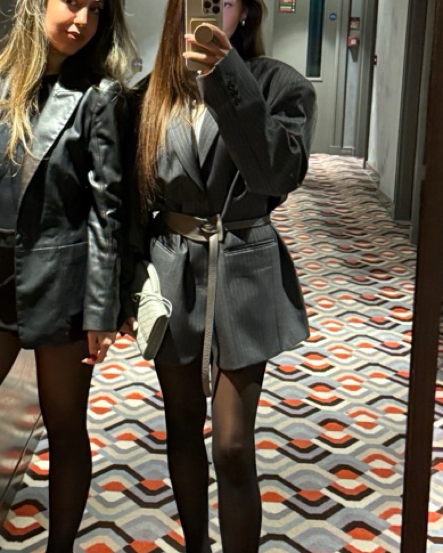 Grey and white pinstripe. Size is XS/S. Frankie shop blazers are VERY oversized. Could also fit a M/L. Please check brand size and fit guide. Looks best belted with tights and pumps 🤍