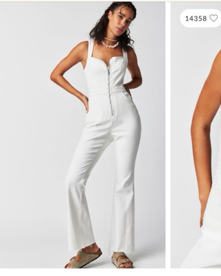 Stretchy denim jumpsuit! Front zipper and back tie to adjust im 5 4 and fits me perfectly height wise