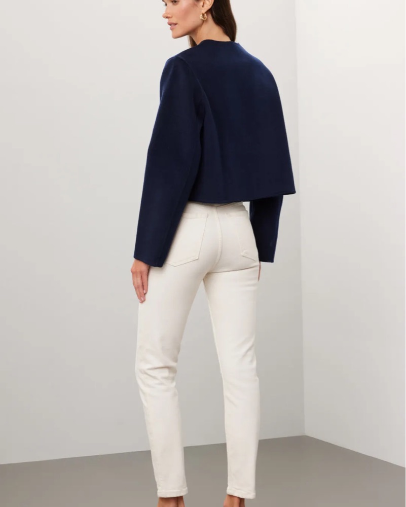 Could fit S-M - slightly oversized but cool/relaxed fit. Great transitional top layer is here in this collarless button-front jacket by Maje. Perfect for the office or a casual day out.