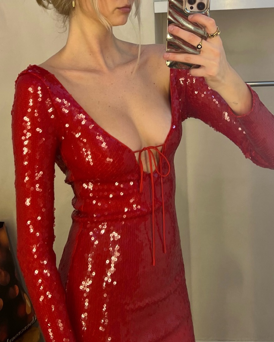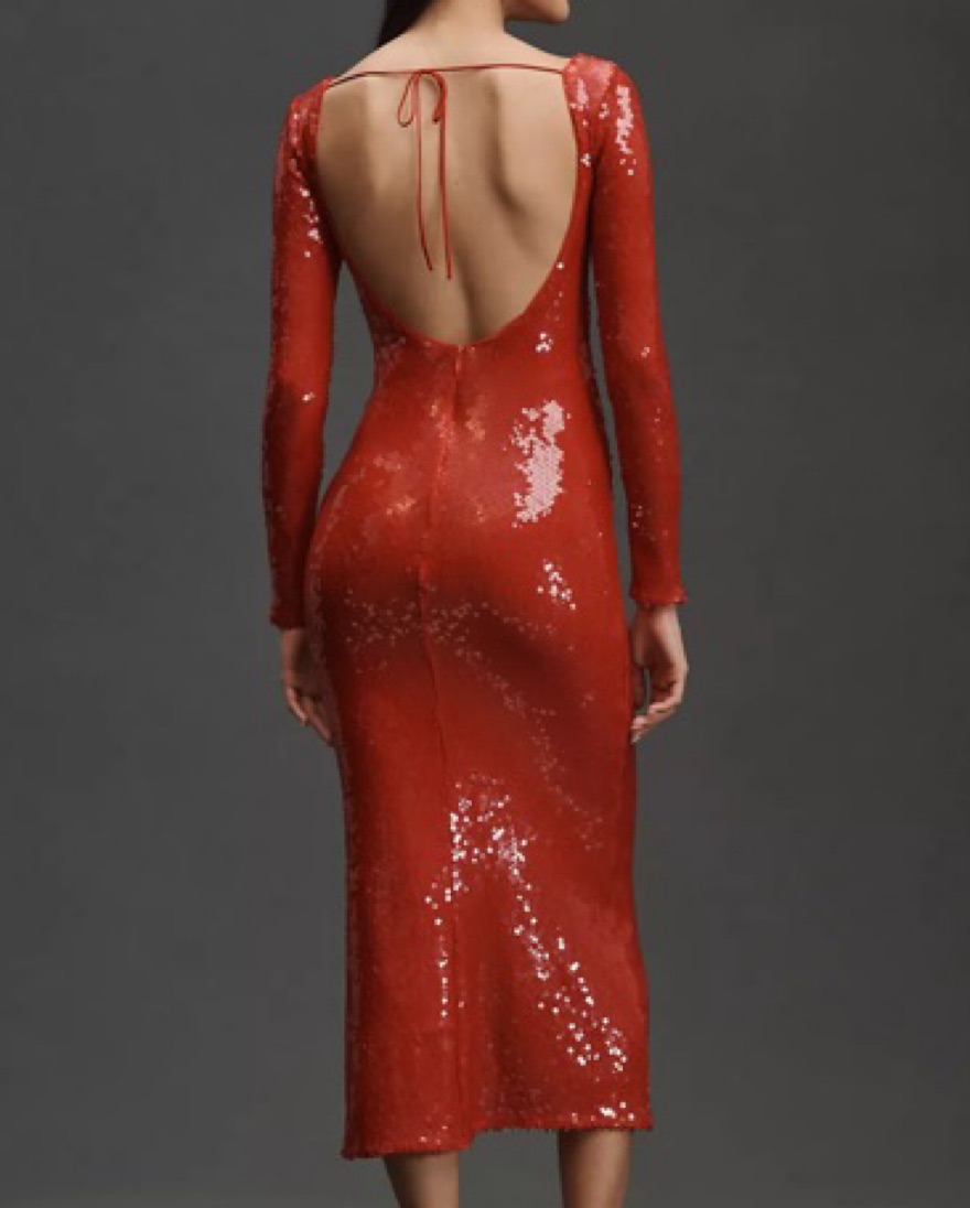 Anthropologie Red Sequin Tie Front & Back Mini Dress Size 2 (had it altered to mini length)
