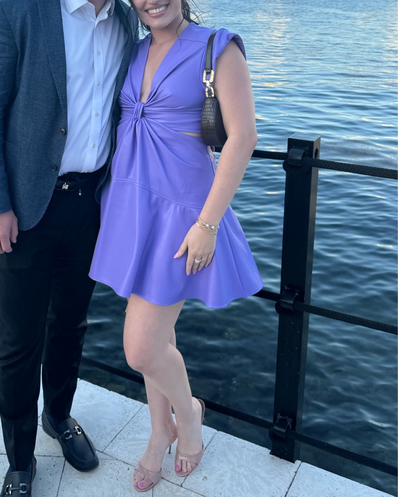Great vegan leather dress in lavender- perfect for spring or summer for any occasion! Size 6 and fits TTS