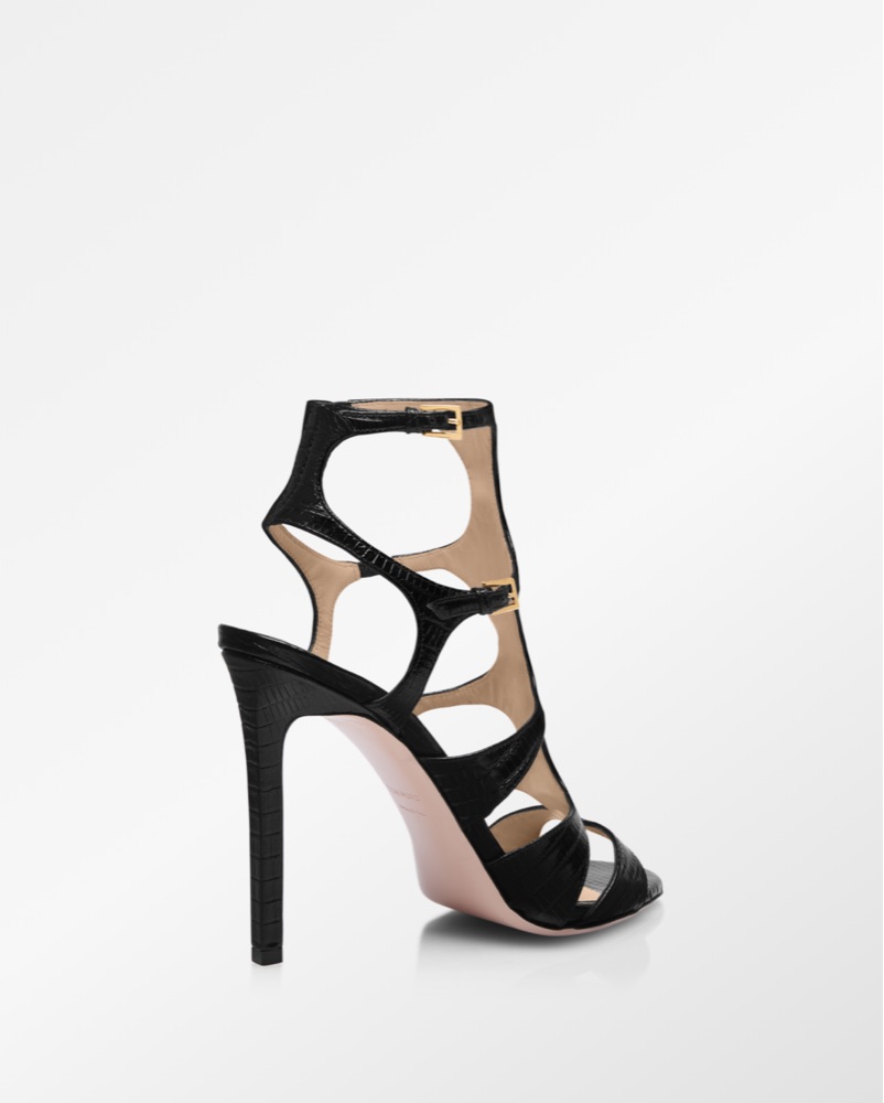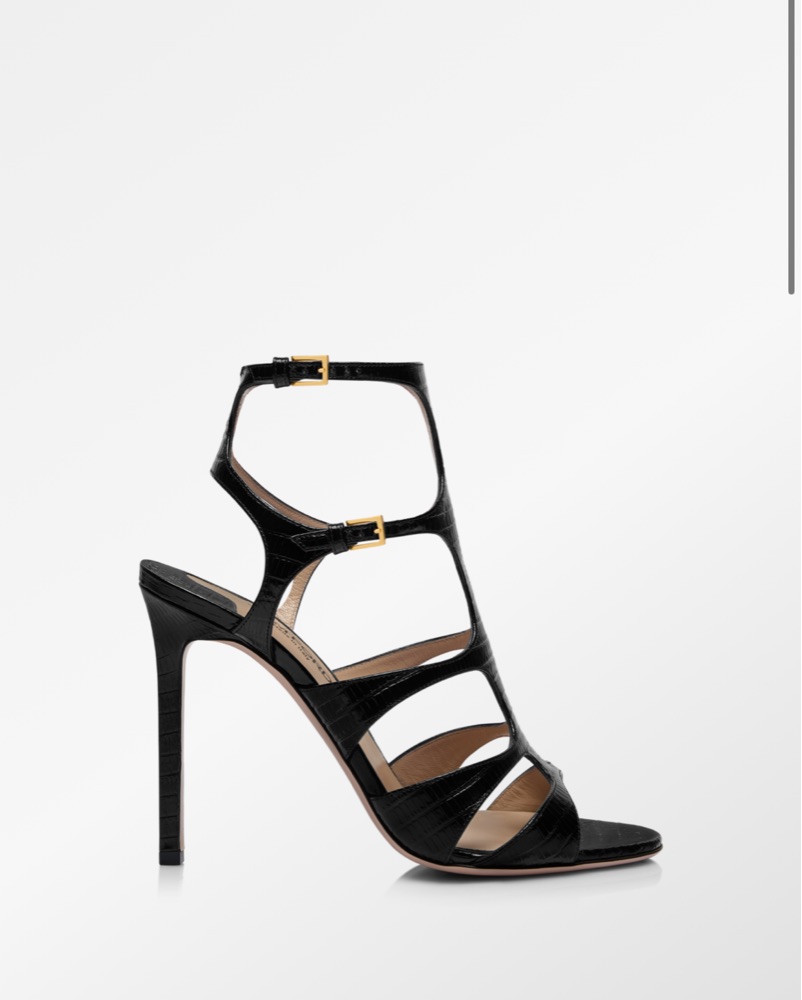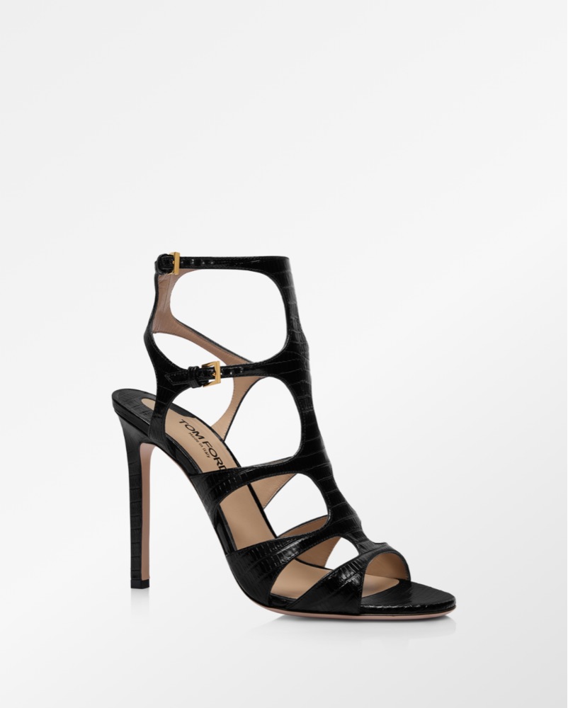 Stiletto Tom Ford cage sandals in black croc printed leather