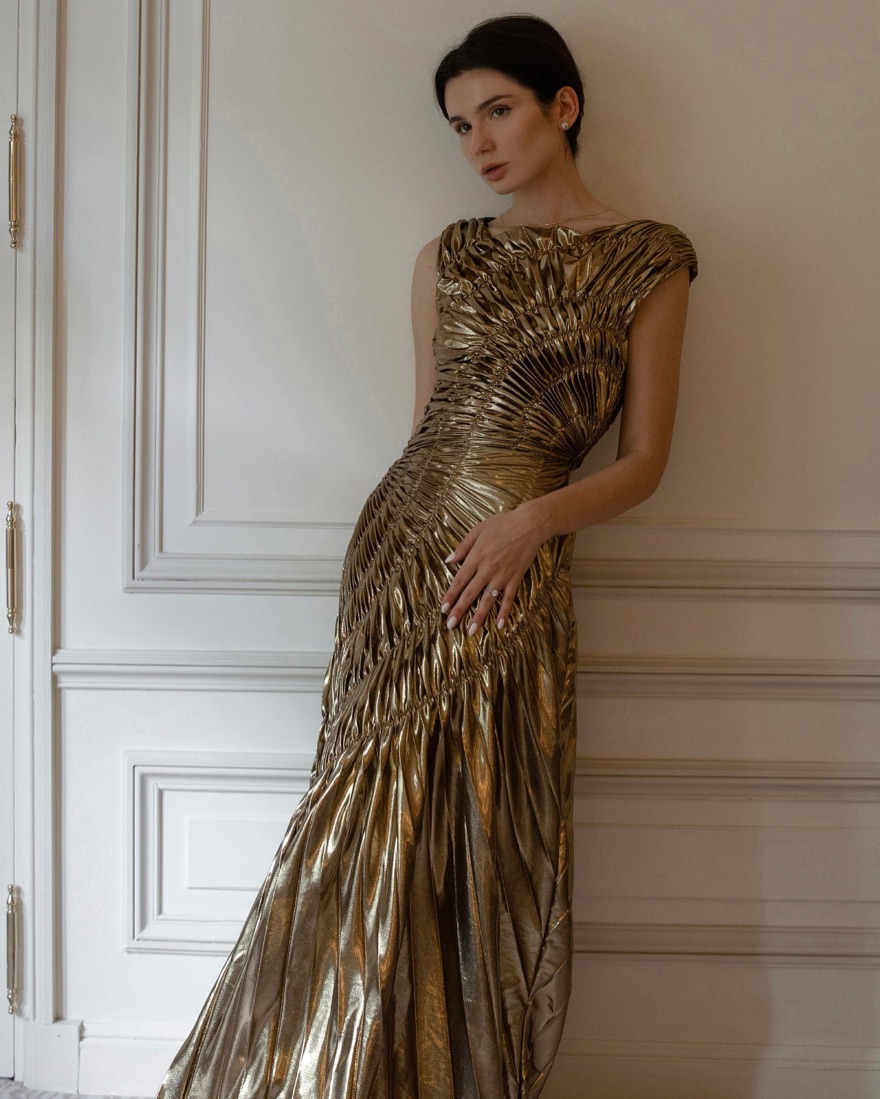 Viral 'Making the Cut' dress. So unique/flattering! Size US Small (UK 8) fits like a 2/4. Tags: gold dress, metallic dress, gold black tie dress, gold formal gown, christmas dress, Christmas party, Holiday, metallic, holiday party, gold bridesmaid dress, gold gown, New Years eve wedding, sequi