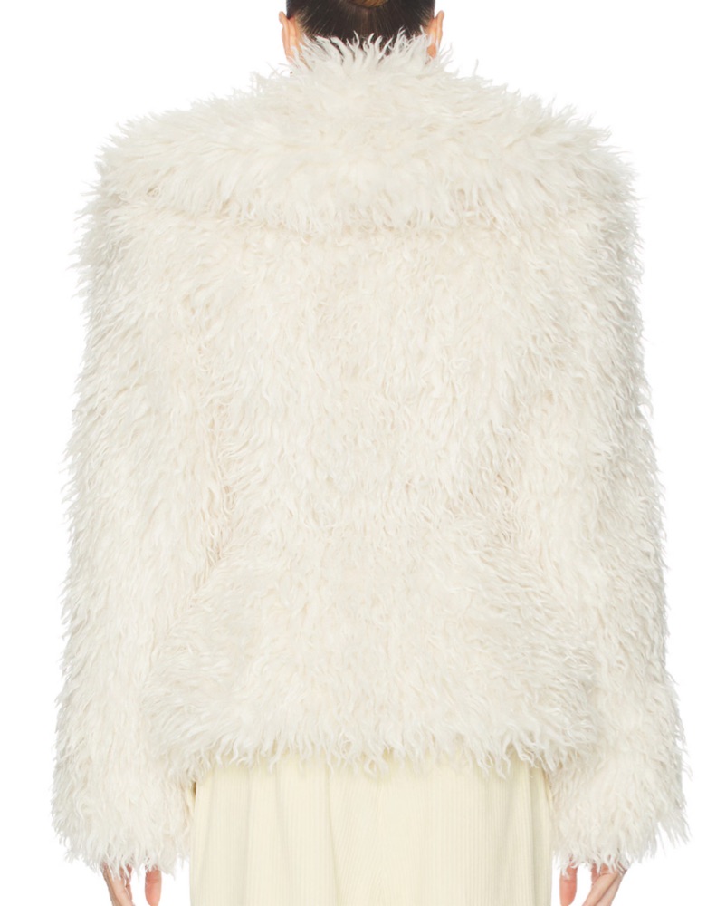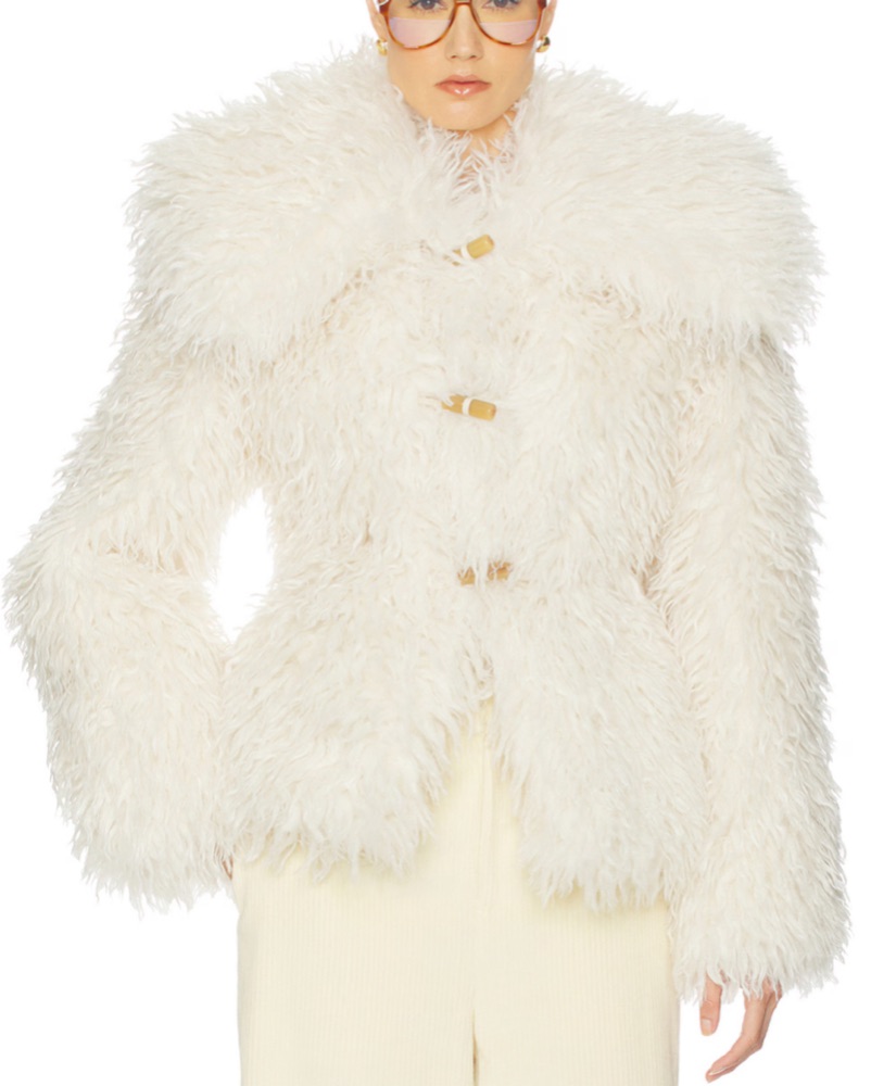 Dramatic Collar Faux Shearling Jacket by Helsa - Pickle