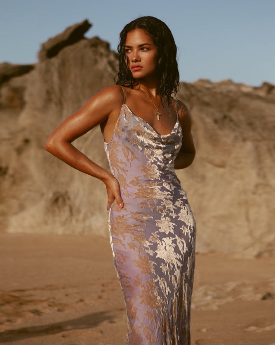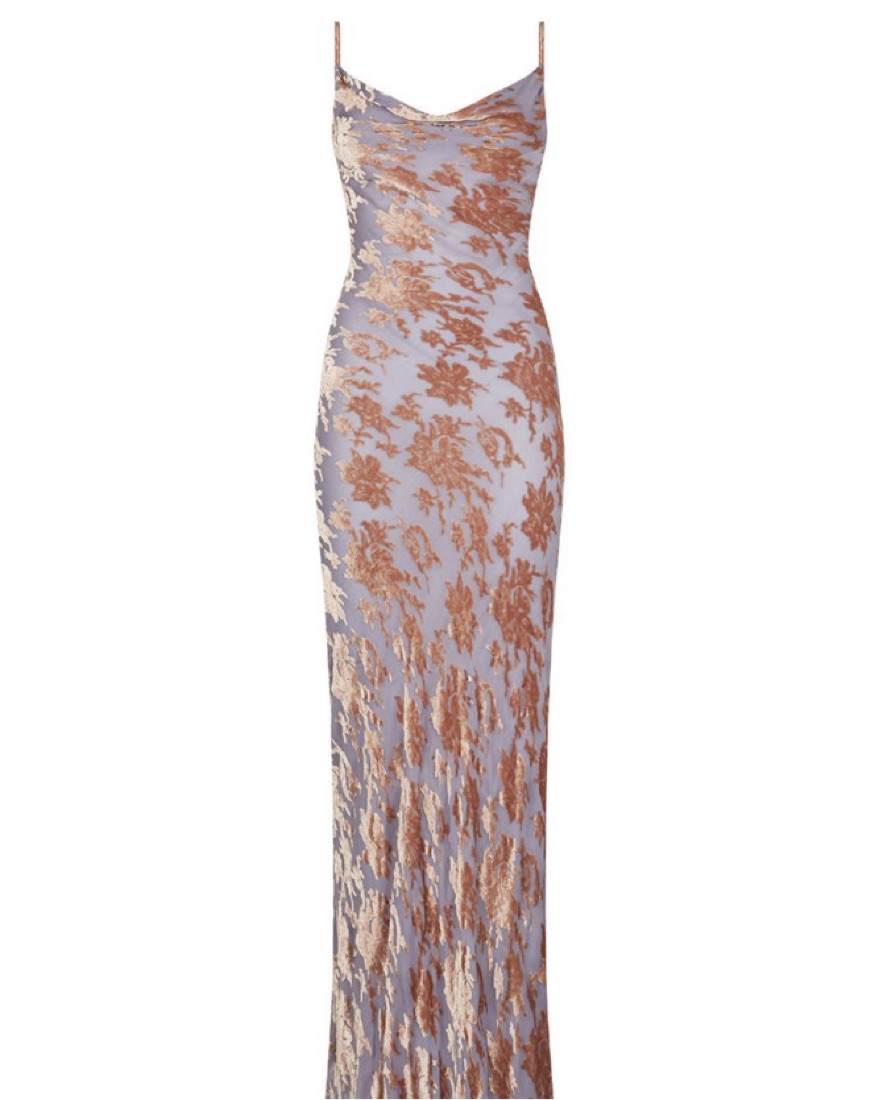 Got engaged in this dress… what more can I say? 100% Silk Devoré Cowl neckline back keyhole self tie Adjustable straps Lined Delicate item