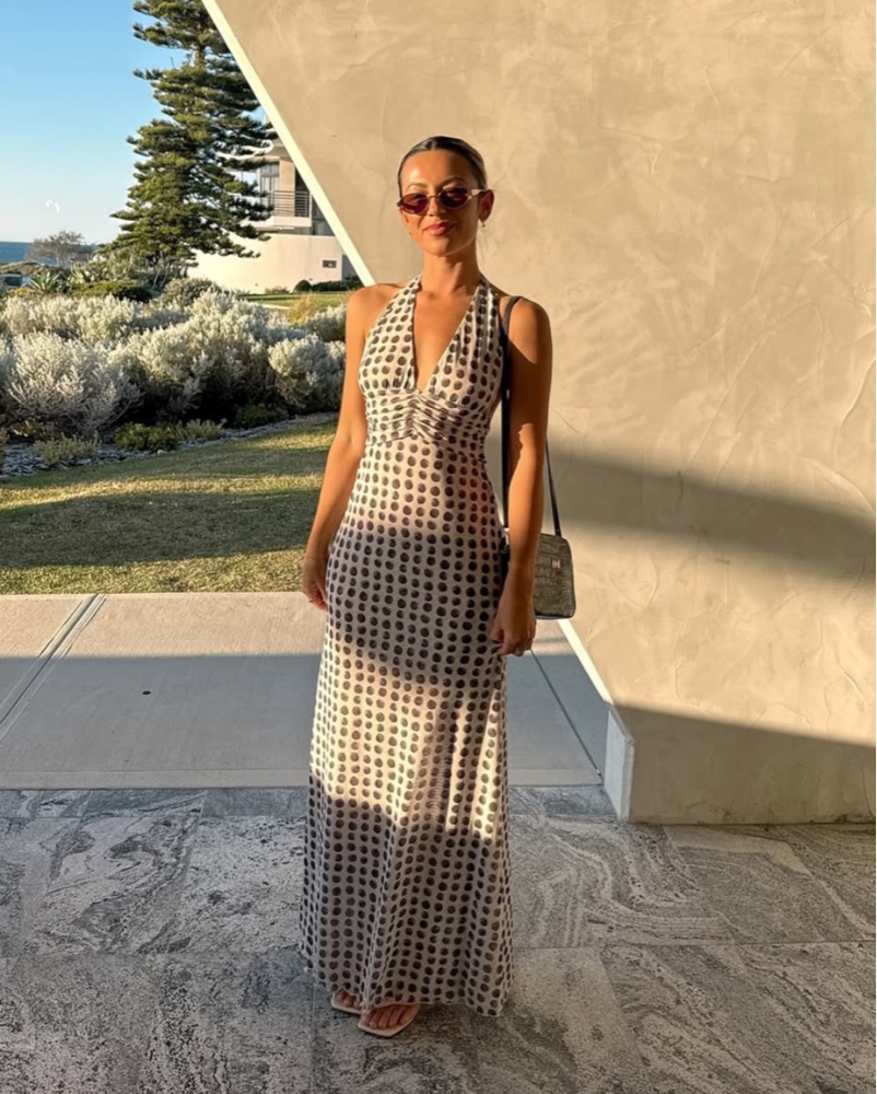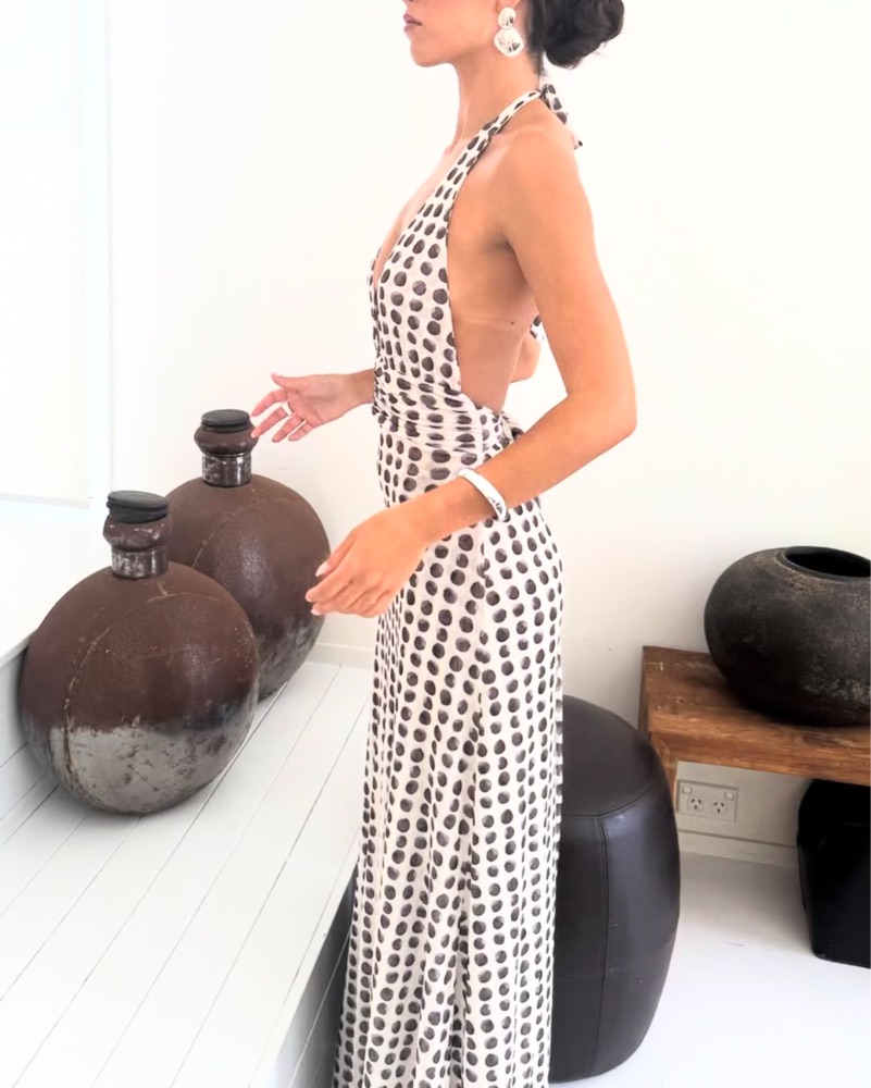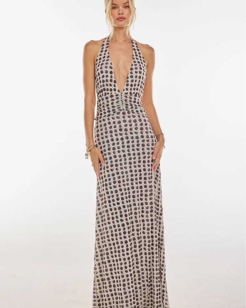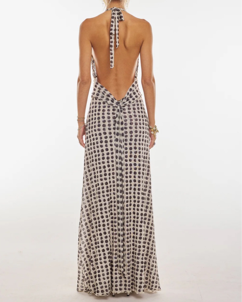 CHELSEA MAXI DRESS IN ECLIPSE - super comfortable and can be worn with nothing underneath. Halter Plunge neck, Low tie back, double lined in SHEER MESH