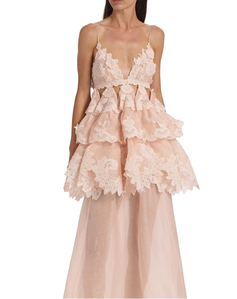 Zimmerman Crush Tiered Lace A-Line Gown by Zimmermann - Pickle