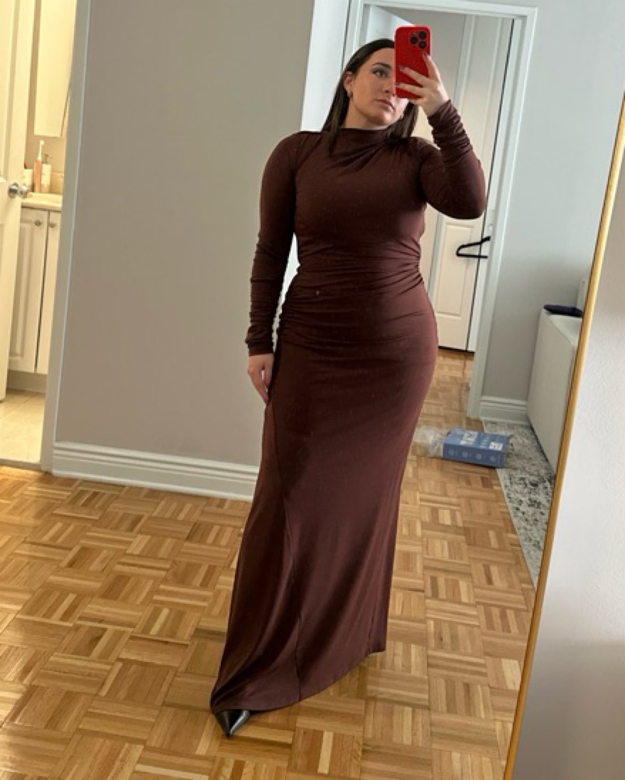 Brown long sleeve maxi dress stretchy material
